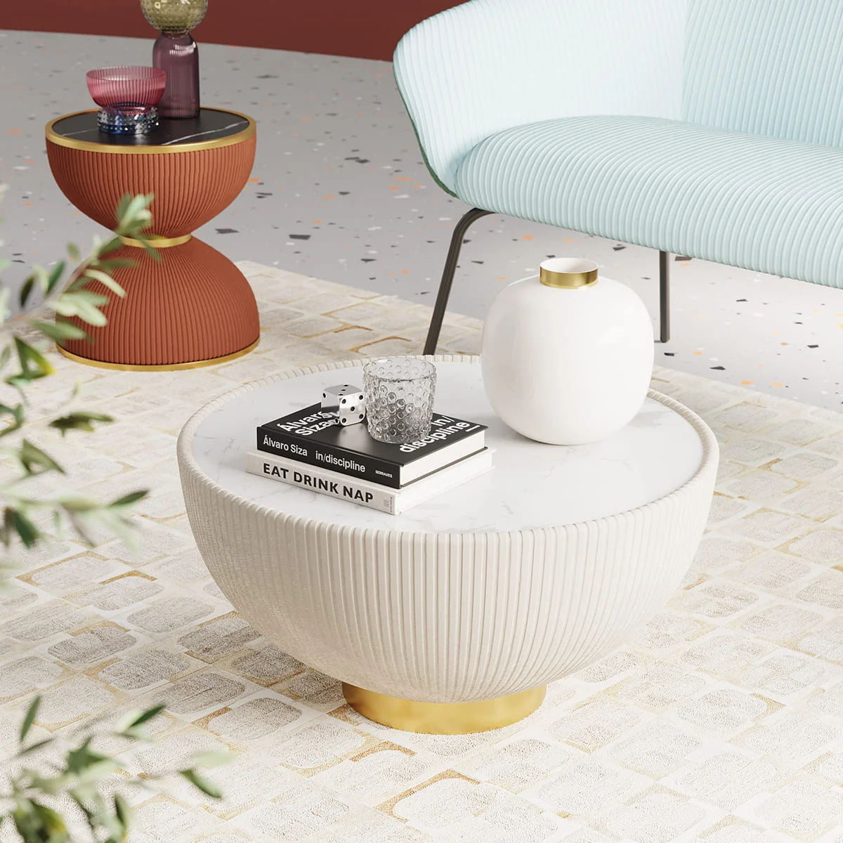 The round side table Endless Vegas is the right addition to any modern interior. The Sincerestone top gives the small living room table a luxurious appearance, while the satin steel base stabilises and serves as a stylish design element at the same time. The leather-look trim, which is quilted, gives the table an incomparable feel. With its unique design the Endless Vegas side table is a real eye-catcher and a must-have for anyone looking to create a modern and stylish interior.