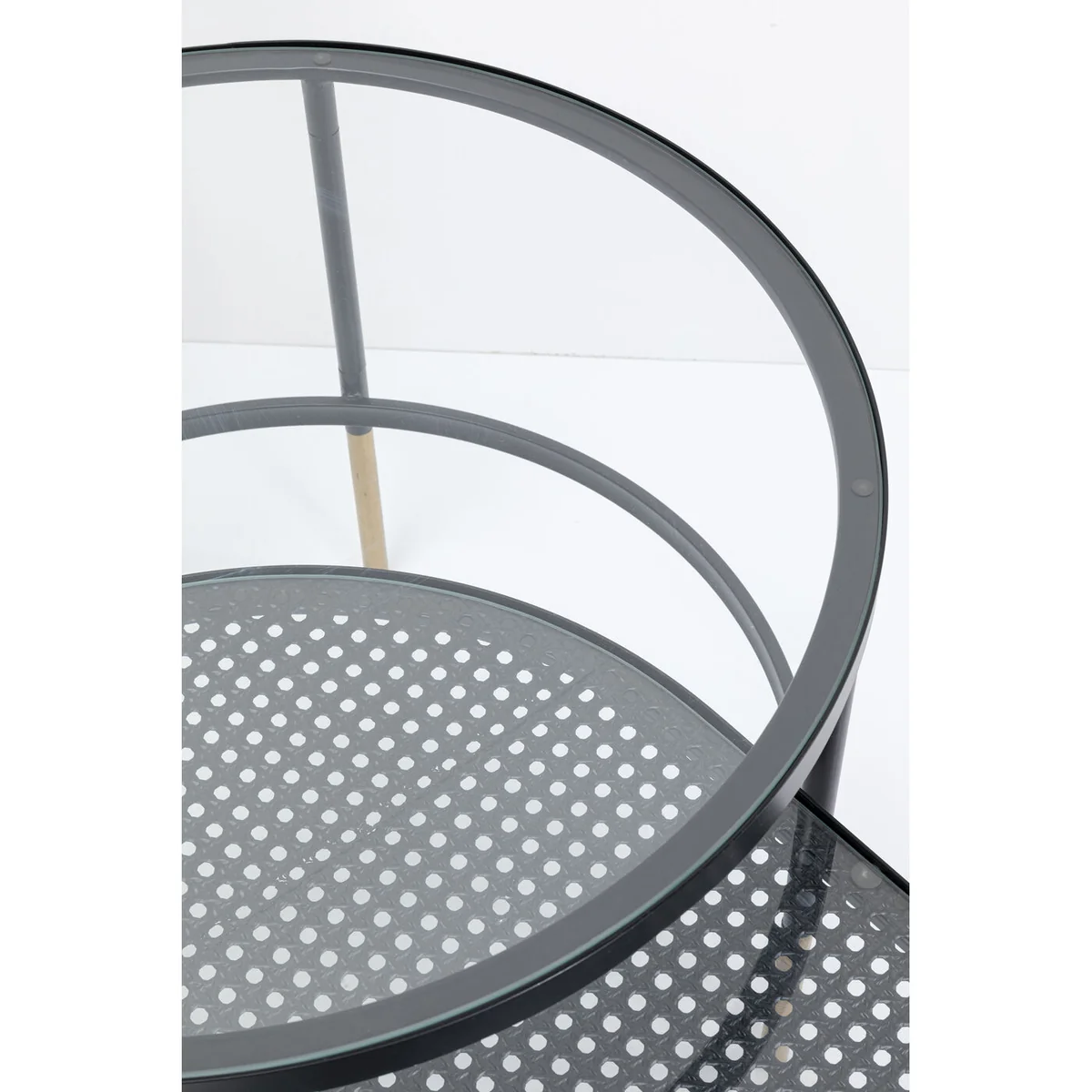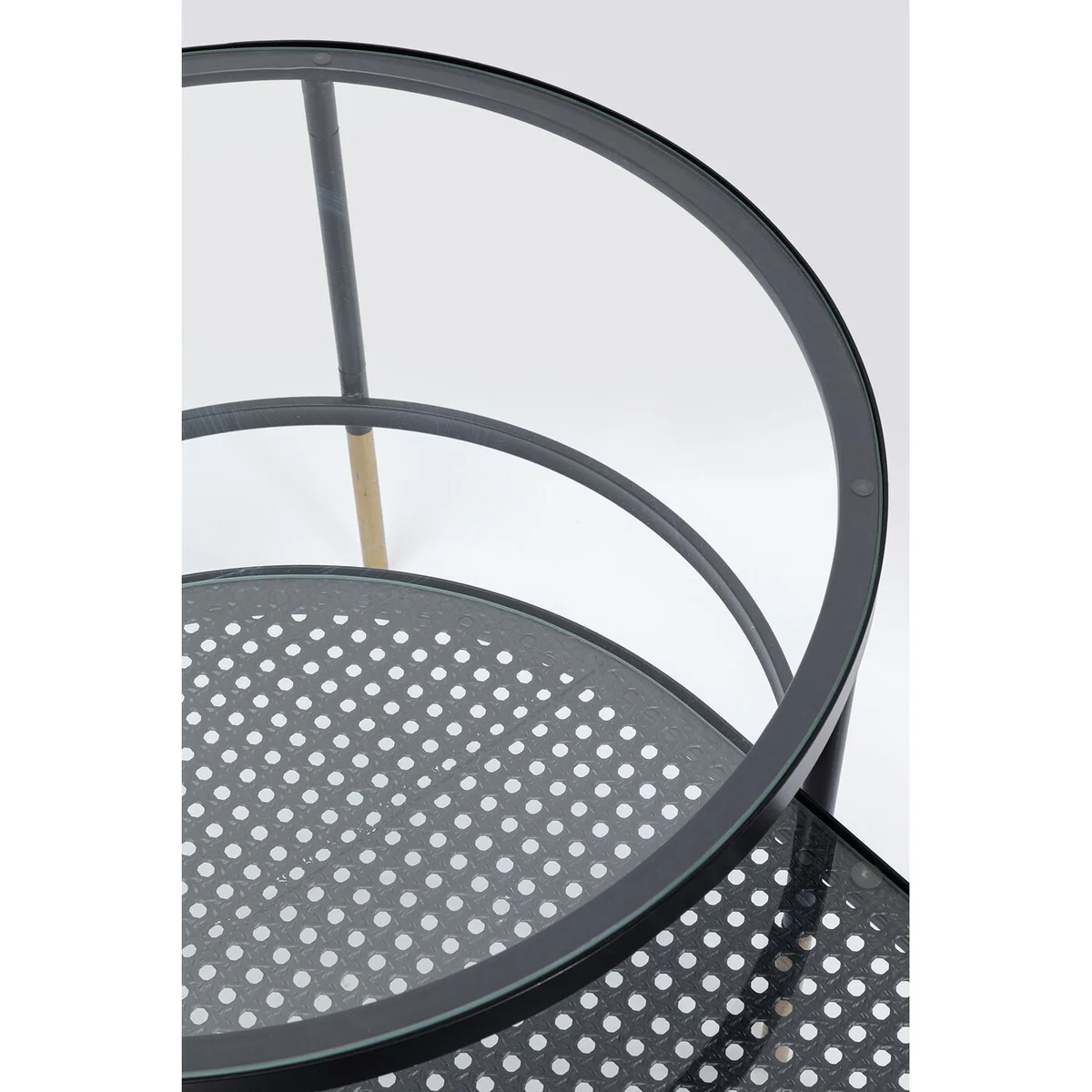 The Fence furniture collection expands the style worlds of steel furniture. It is not the traditionally rugged industrial look, but the modern elegance that makes this line of furniture stand out. The element of surprise is provided by three ingredients that are new to workshop furniture. Viennese mesh is featured on the fronts. Smooth surfaces of lacquered steel and glass alternate with sections in a wickerwork look, which are also made of steel. The design of the Fence collection is also unmistakable thanks to the sweeping lines of the legs and frames, which end in a kind of railing, similar to the rail around the deck of a ship. To round everything off, handles and legs with a brass finish provide elegant retro moments. The collection includes a side table, coffee table, console table, lowboard, chest of drawers, cabinet, desk and sideboard.