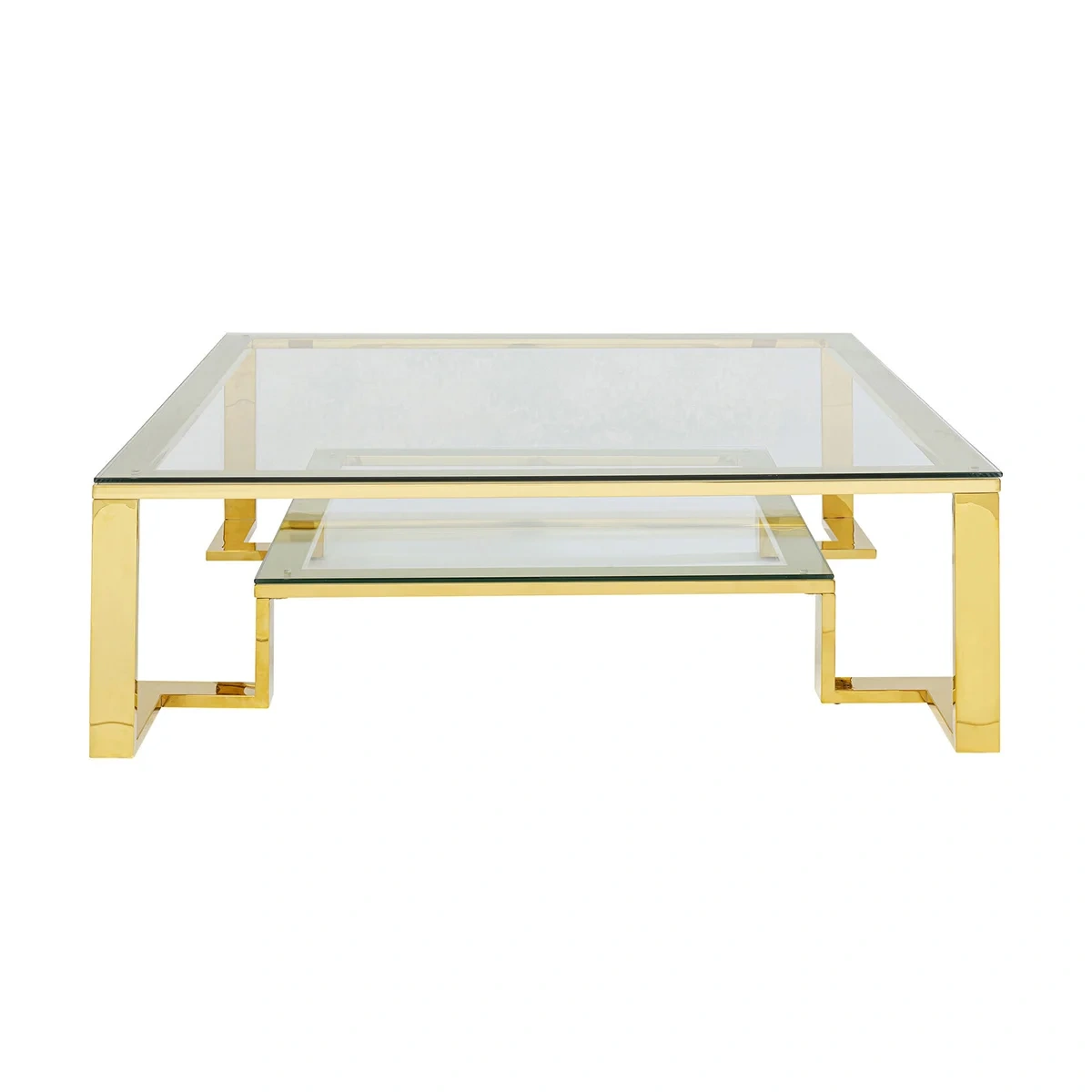 The glamorous Gold Rush coffee table is a real eye-catcher in the living room - and more than deserves its name. It captivates with its combination of clear shapes and luxurious design. With two glass shelves framed by a golden frame, it fits perfectly into elegant interiors with light-coloured furniture. A bonus: both the golden frame and the glass shine in sunlight and candlelight.