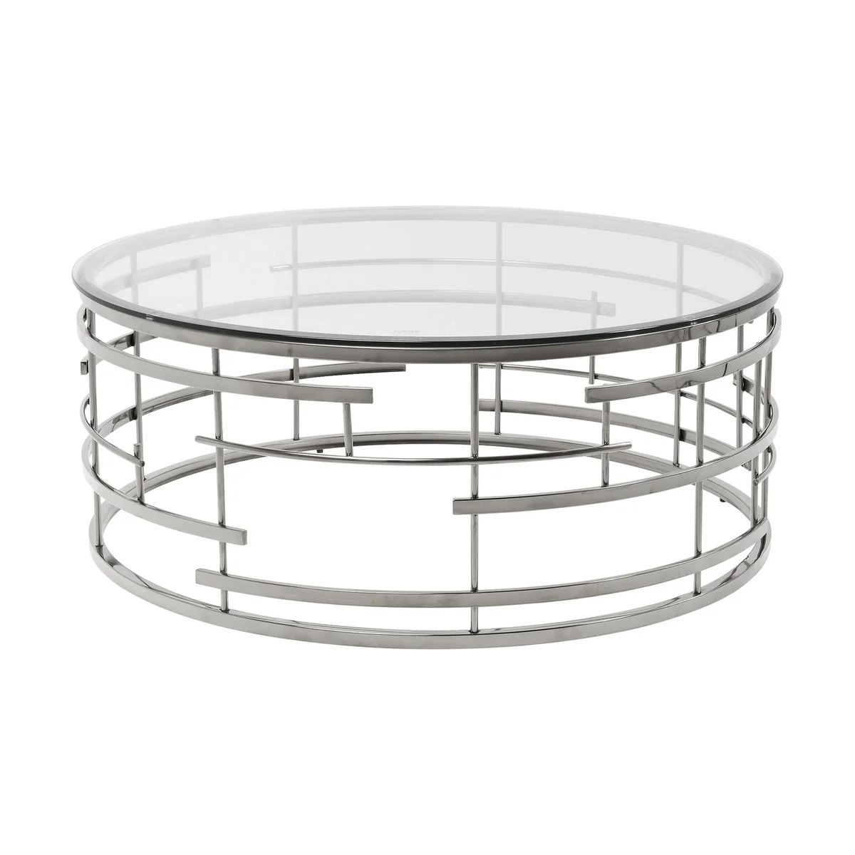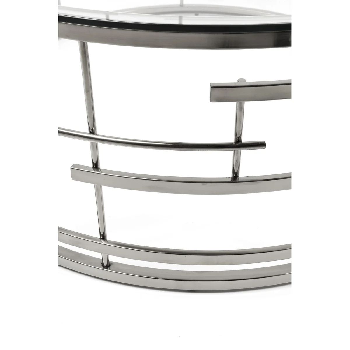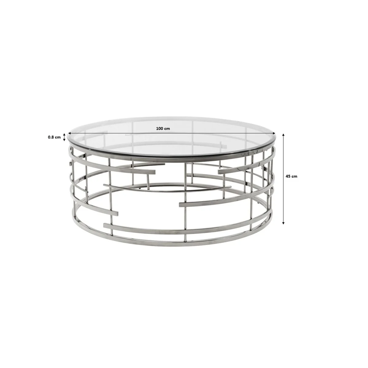 ● Round side table with an excitingly beautiful frame in silver as a highlight in front of the couch ● A luxurious glass table that adds style to the seating landscape in the living room or as a bedside table next to the bed ● Top tip: round coffee tables ideally complement cube-shaped, angular sofas ● Forget red wine rings and water stains: the easy-care top is made of transparent safety glass ● High-quality base made of polished stainless steel