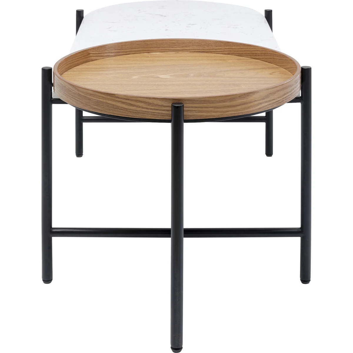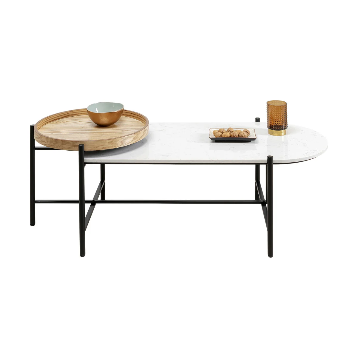 • Designer furniture featuring exclusive materials and timeless, modern design • The oval table top is made of genuine white marble • Round top in the shape of a tray in fine ash wood veneer • Tray not removable • The stable but delicate frame is made of black lacquered steel • Highly decorative in front of the sofa in the living room with generous storage space