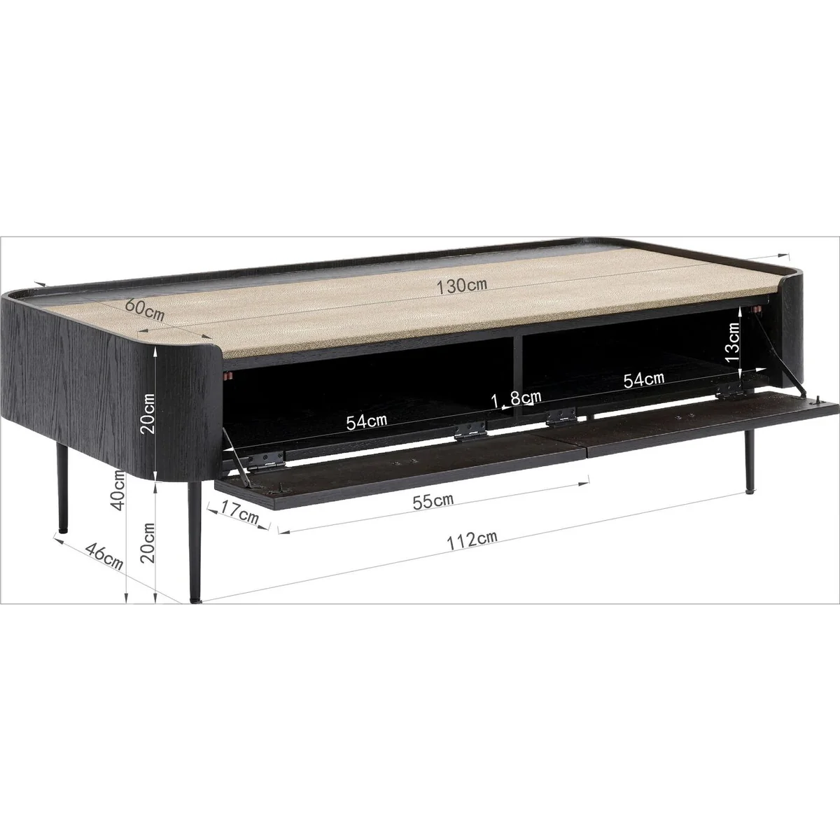 L 130 cm | D 60 cm | H 40 cm