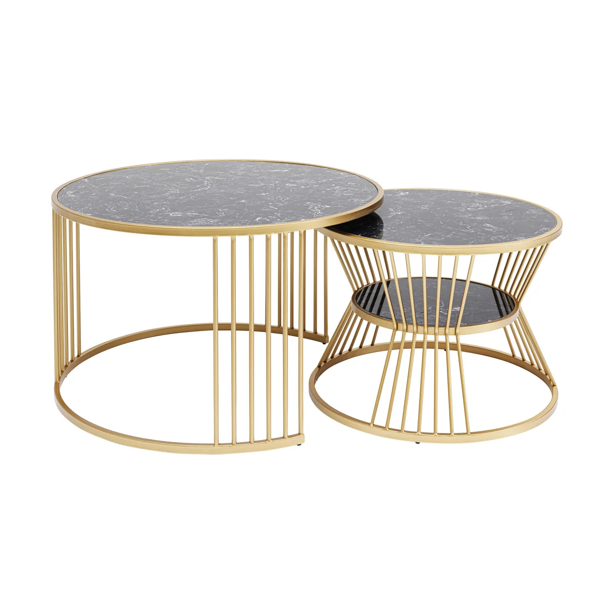 Introducing our Roma Set of Two Coffee Tables in Golden Steel, a luxurious addition to any living space.