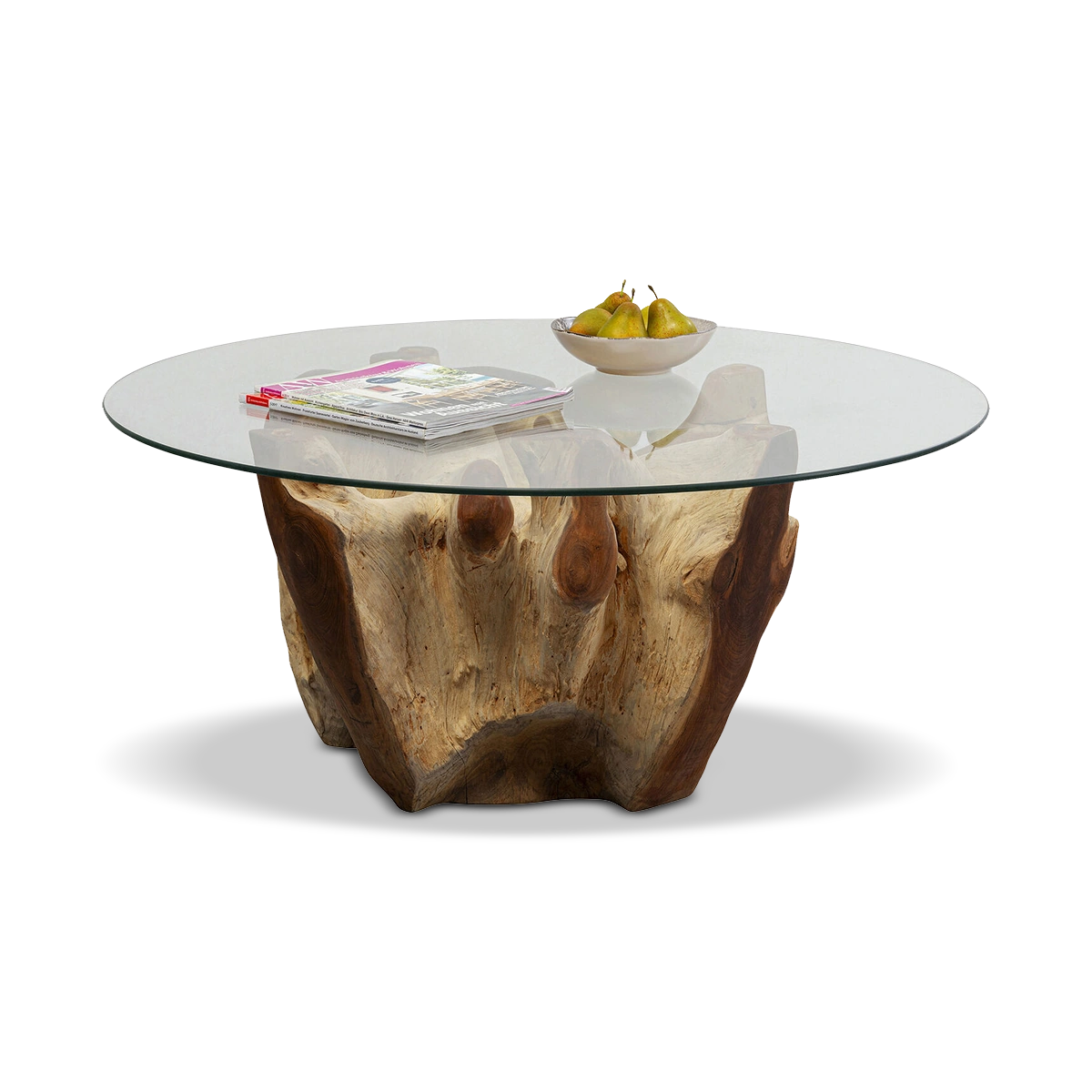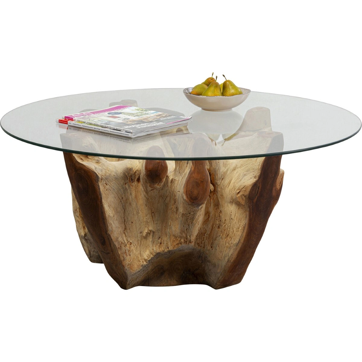 An attractive coffee table that combines elegance with natural charm. The root-shaped frame is made of natural teak and carries a top of ESG safety glass. Each piece is unique. Root series.