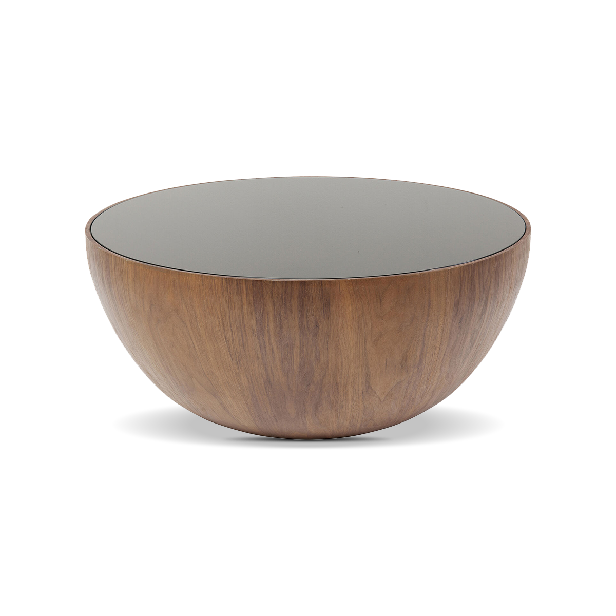 - An elegant mix of black glass and dark wood - united by the simple, beautiful hemispherical shape