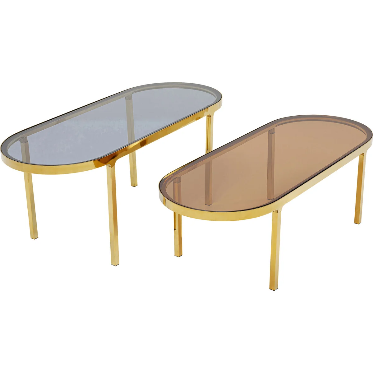 Benefit from the versatility of having two coffee tables in your living area. They can be used together for a coordinated look, or spread across the room to create multiple focal points. The toughened safety glass ensures durability, while the brass-plated stainless steel provides a chic, modern aesthetic.