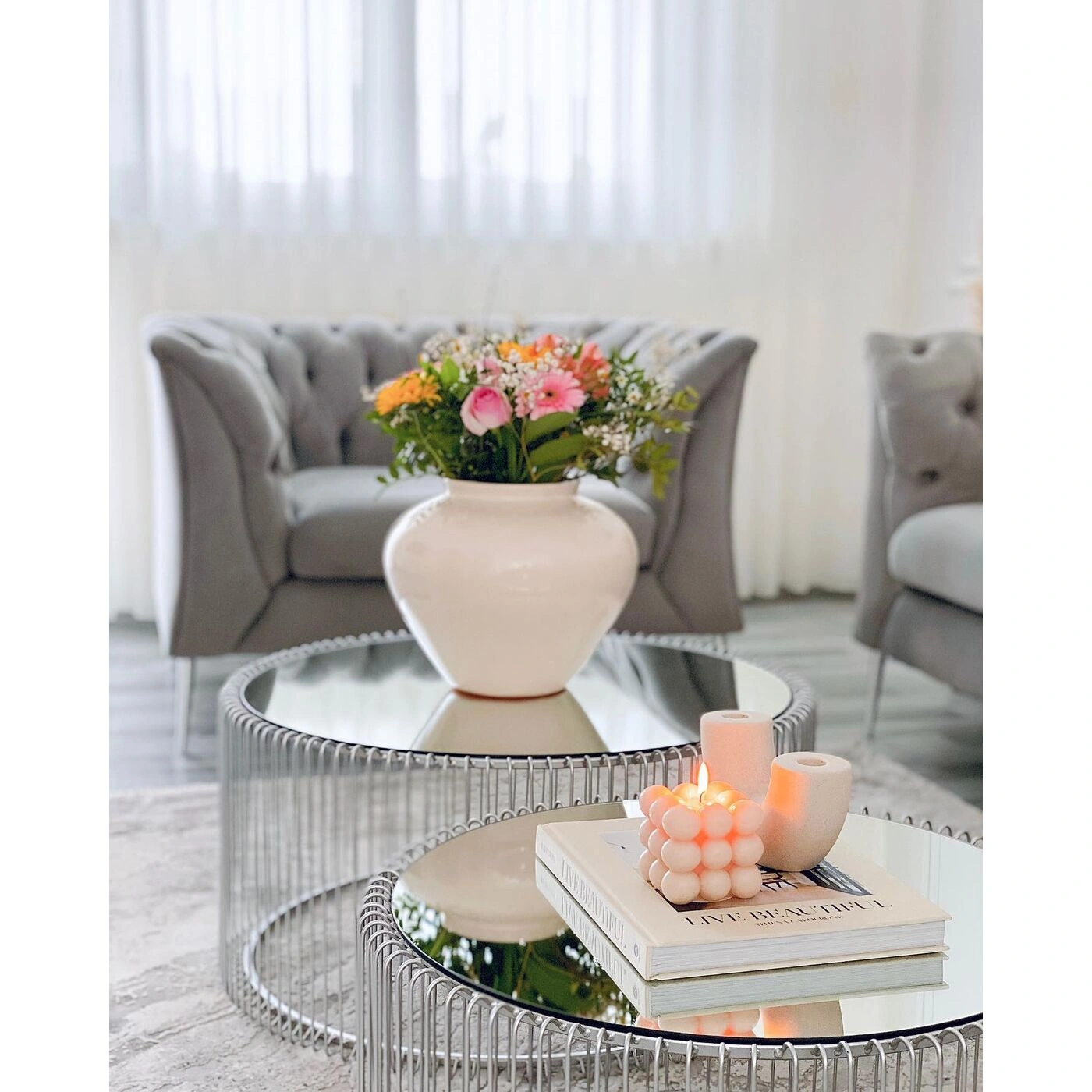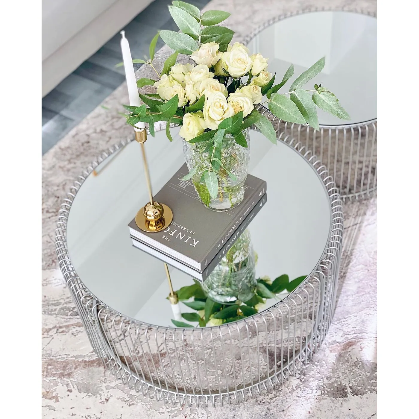 Silver Steel Wire Coffee Table Set of Two