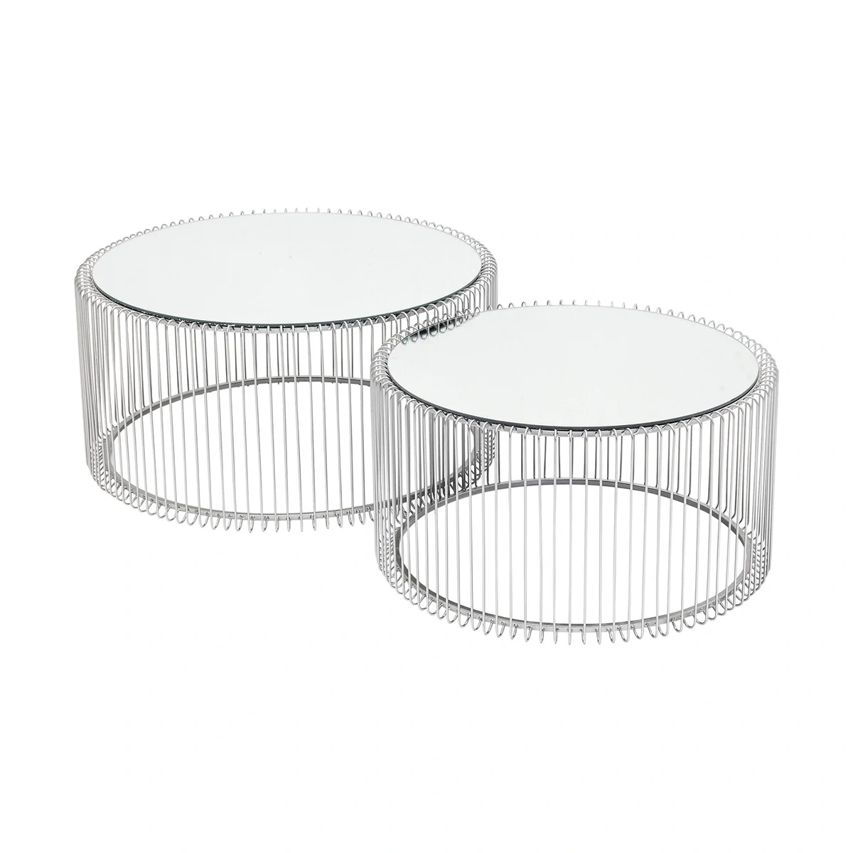 Set a contemporary tone in your living room with this set of two Silver Steel Wire Coffee Tables. These tables, with their metallic allure, bring a touch of modern elegance.
