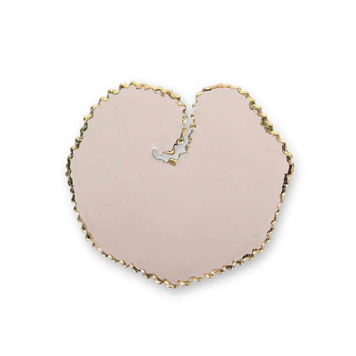 Key features of the coaster include its sturdy iron construction and a delightful rose hue. The coaster measures 12 cm in length, 10 cm in width, and has a slim profile of just 0.25 cm. It's designed with purposeful simplicity and durability in mind.