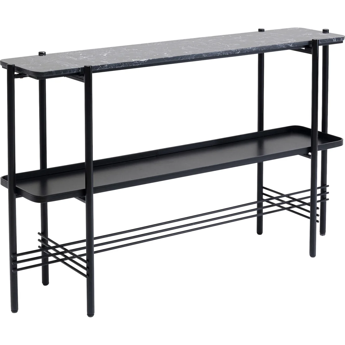 Console tables are the new sideboards. They offer space for storage and decoration, but appear comparatively airy and light and are usually less deep. The console is a trendy piece of furniture and has been rediscovered by interior designers because it can be used so flexibly in any room. For example, as a smart solution for the narrow hallway with a mirror above it, as a dressing table in the bedroom or in the home office for documents, the tablet and boxes with utensils. Or you can surprise your guests with this marble console as an exclusive home bar.