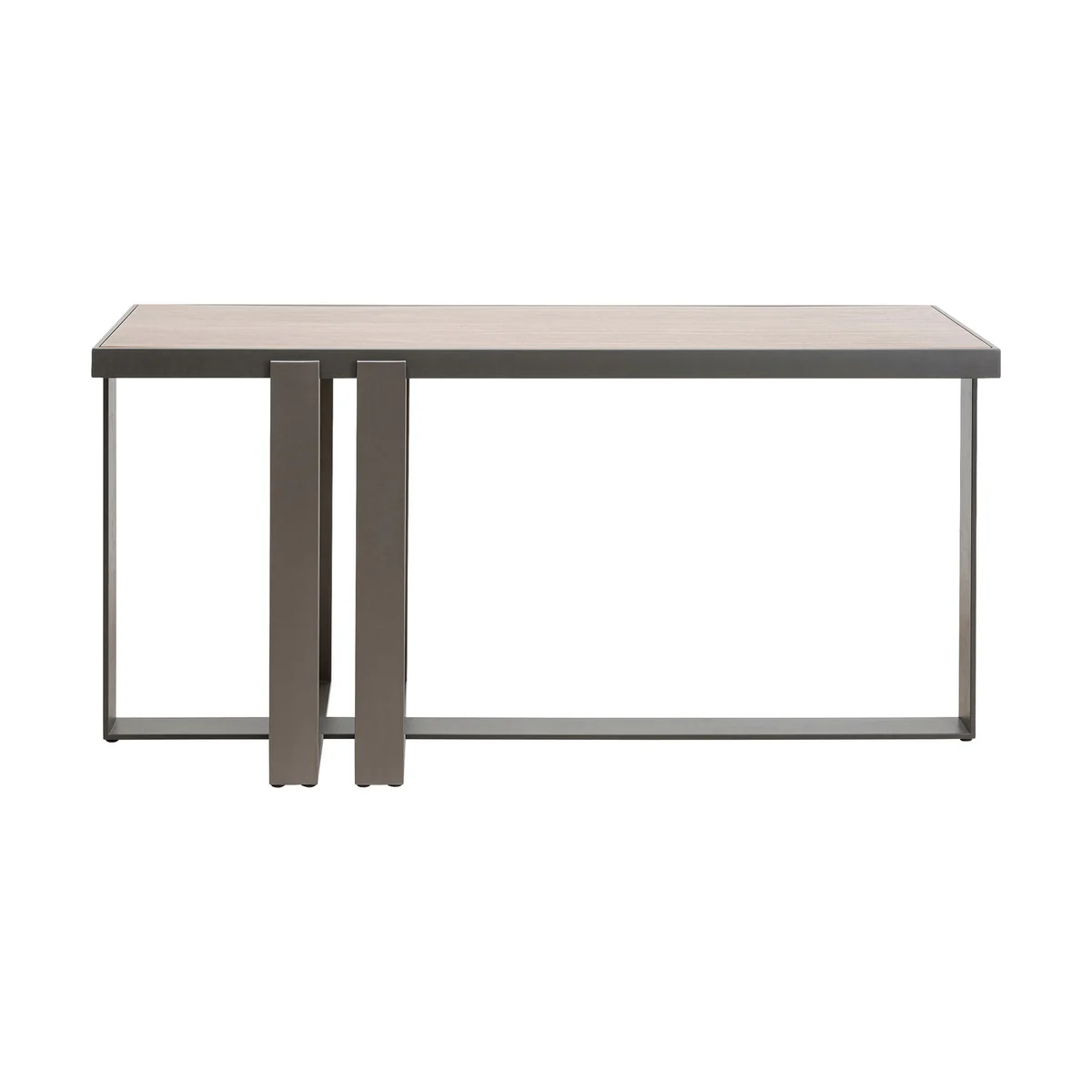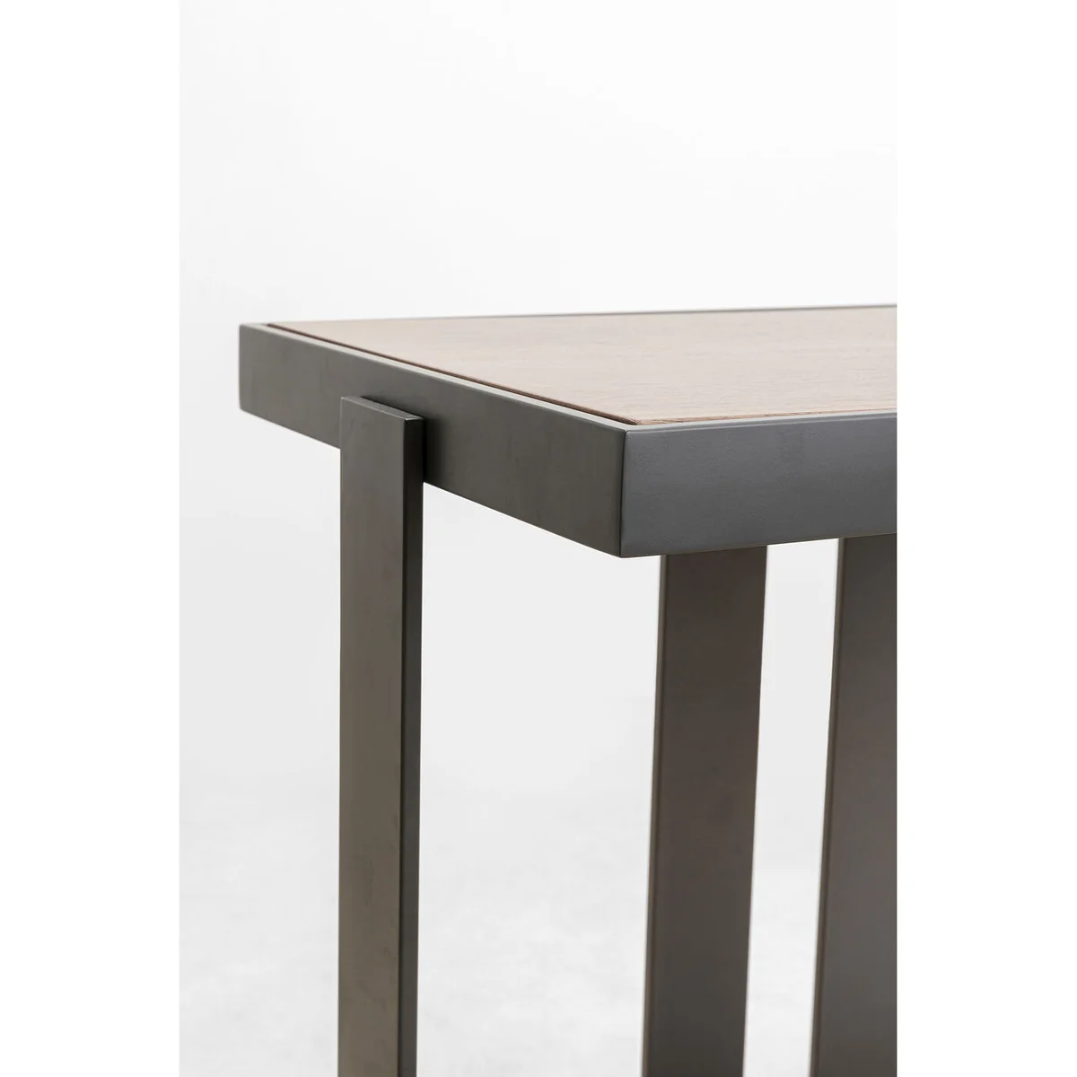 The steel-grey Bravo console table lends an aesthetic atmosphere to any living area. The clean and minimalist design blends seamlessly with other interior styles. The top of the console table is made of high-quality walnut veneer, while the frame features powder-coated steel. This hallway table is ideal as a surface to put stuff on or a place for decorative objects and vases. The brown earth tone of the console table blends harmoniously into any modern furnishing style and is guaranteed to spice up your entrance area.