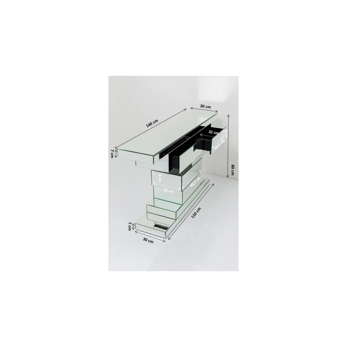 Is that art - or can we use it? Both! Because these seven mirrored cubes make up a console table - a radiantly beautiful showpiece and pure luxury! With its width of one and a half metres, it offers plenty of space for displaying your favourite objects. In addition it provides storage space with three drawers. Highly convenient!