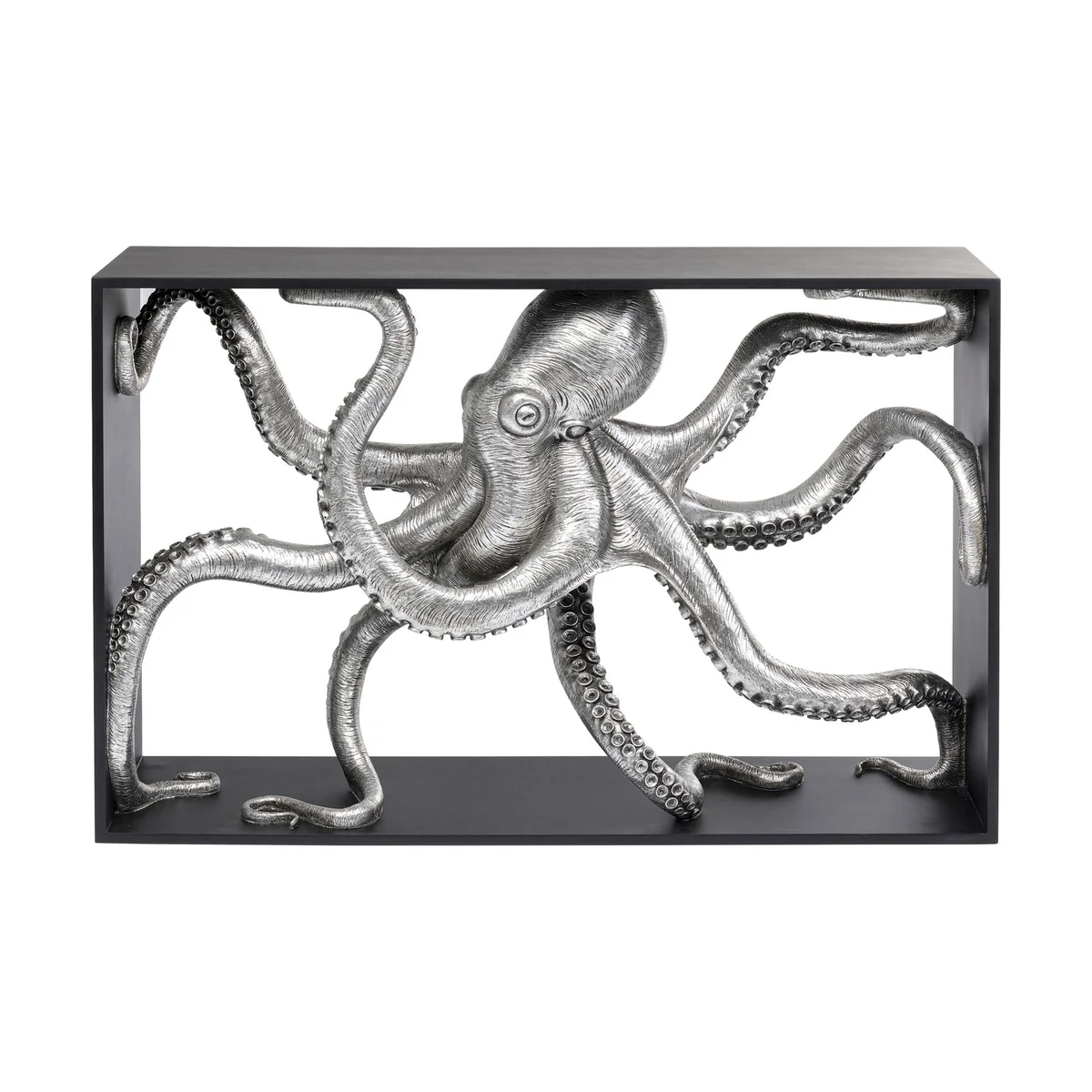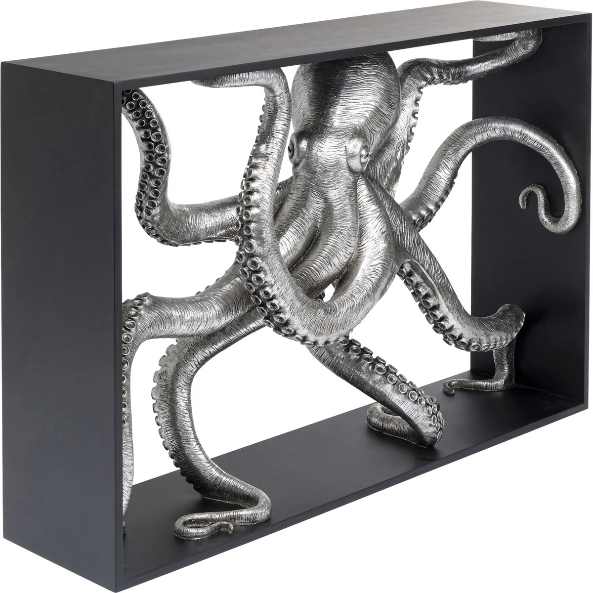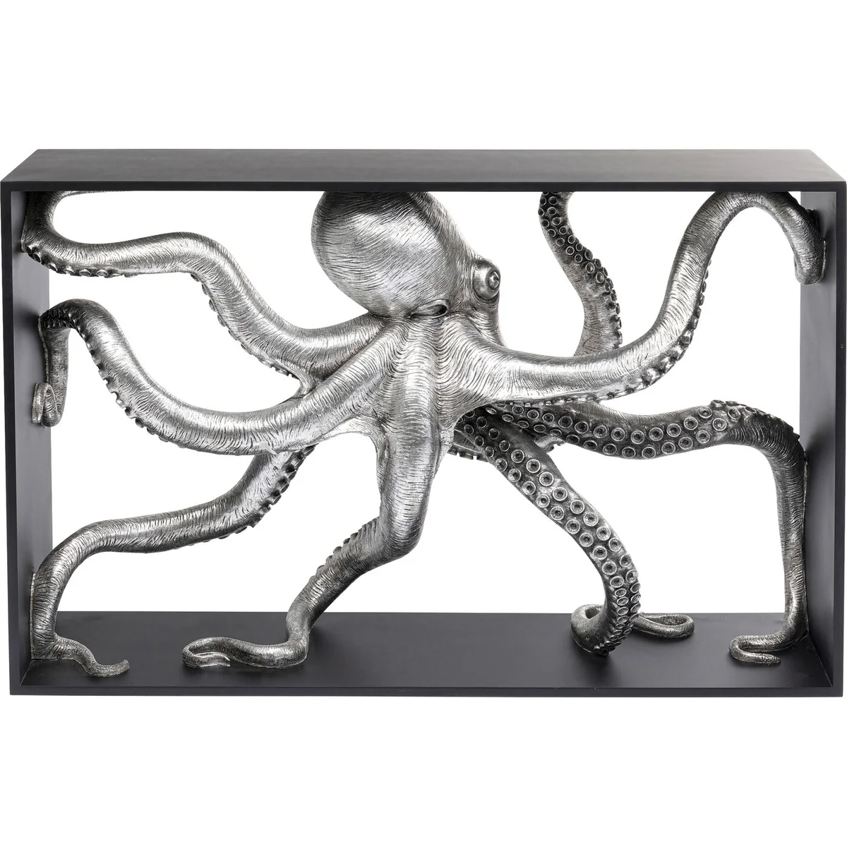 The sensational Calmar console will be an exciting head-turner in a holiday home by the sea or in an urban flat furnished in a luxurious maritime style. With its textured surface and countless suction cups, the octopus figure looks almost real. It is made of artificial stone, which allows for a particularly detailed depiction of the sea dweller. The console table measures 84.5 x 124 x 30 cm ( H/W/D) and is supplied fully assembled.