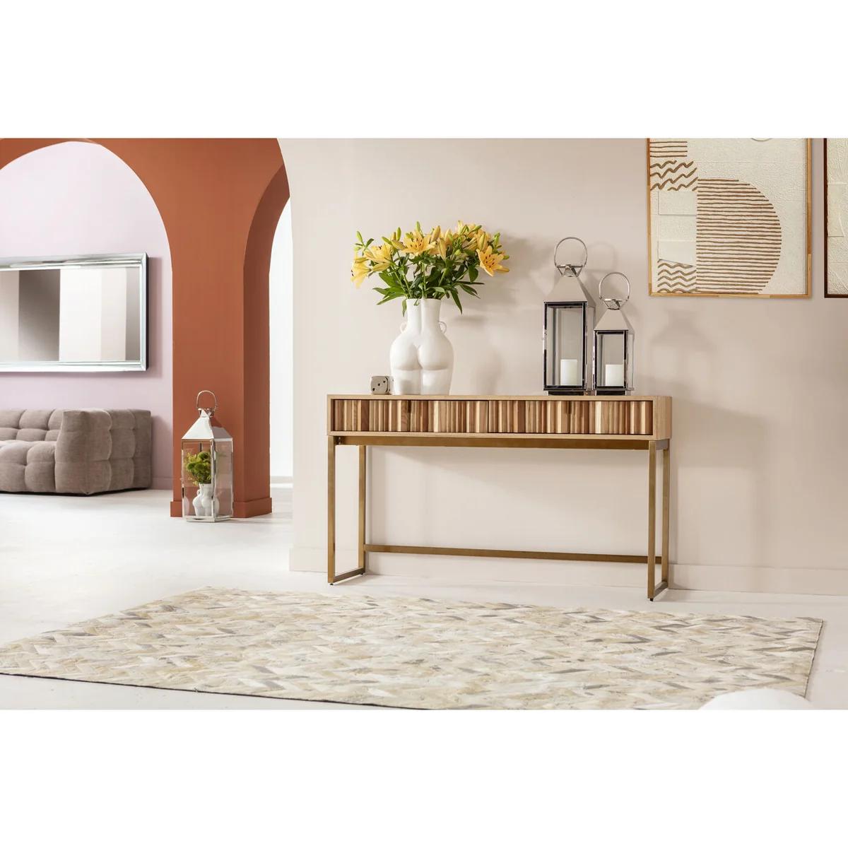 Measuring 136x40cm, this console table is crafted from lacquered stainless steel, ensuring durability and longevity. The natural finish adds a touch of elegance and sophistication to your space. Its dimensions make it ideal for narrow hallways, entryways, or behind your sofa.