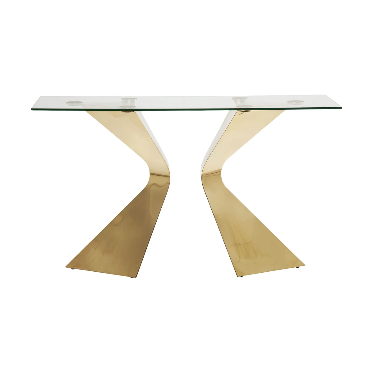 Make an elegant statement in your living space with the Gloria Gold Console Table in Polished Stainless Steel.