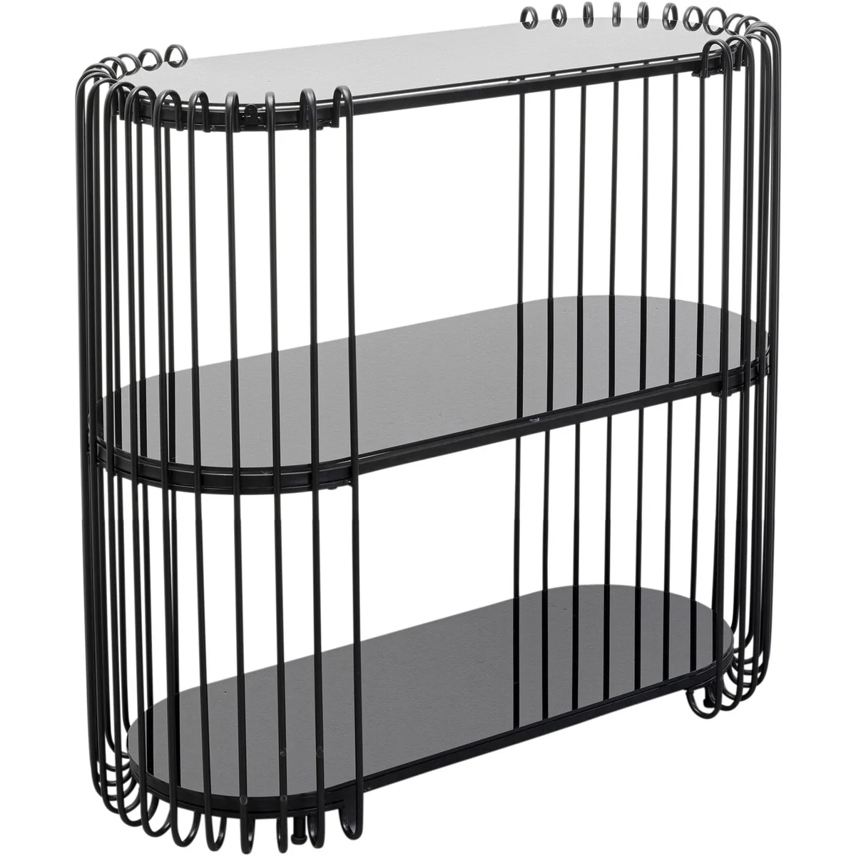 • Black console table made of metal and coloured glass, 77.5 x 81 x 36.5 cm (H/W/D) • With its filigree, graphic frame, a perfect table mounted on bare walls • The advantage of this stylish metal console table is the three tops • A premium-quality modern console table for your most treasured decorative objects in the hallway or all your other rooms • The table tops are made of black tempered safety glass