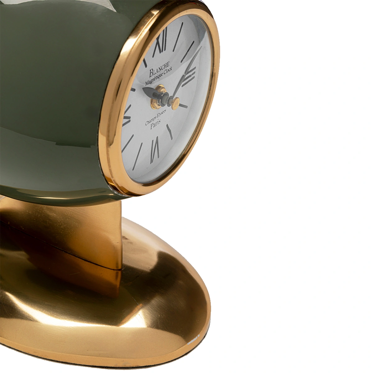 Introducing the Control Table Clock in Green, a striking embodiment of contemporary design and practicality. This modern tabletop accessory features a vibrant green face encased in a sleek, lacquered steel frame.
