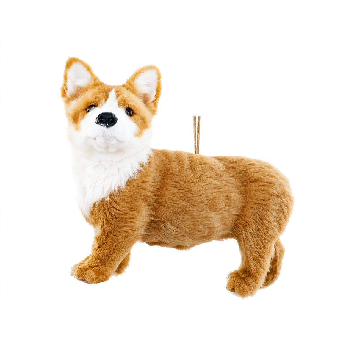 At a compact size of 13cm, this brown Corgi ornament is a blend of 50% plastic (PE) and 50% fake fur, boasting its adorable expression and realistic finish. It's the perfect size to fit any tree, mantel, or festive display.