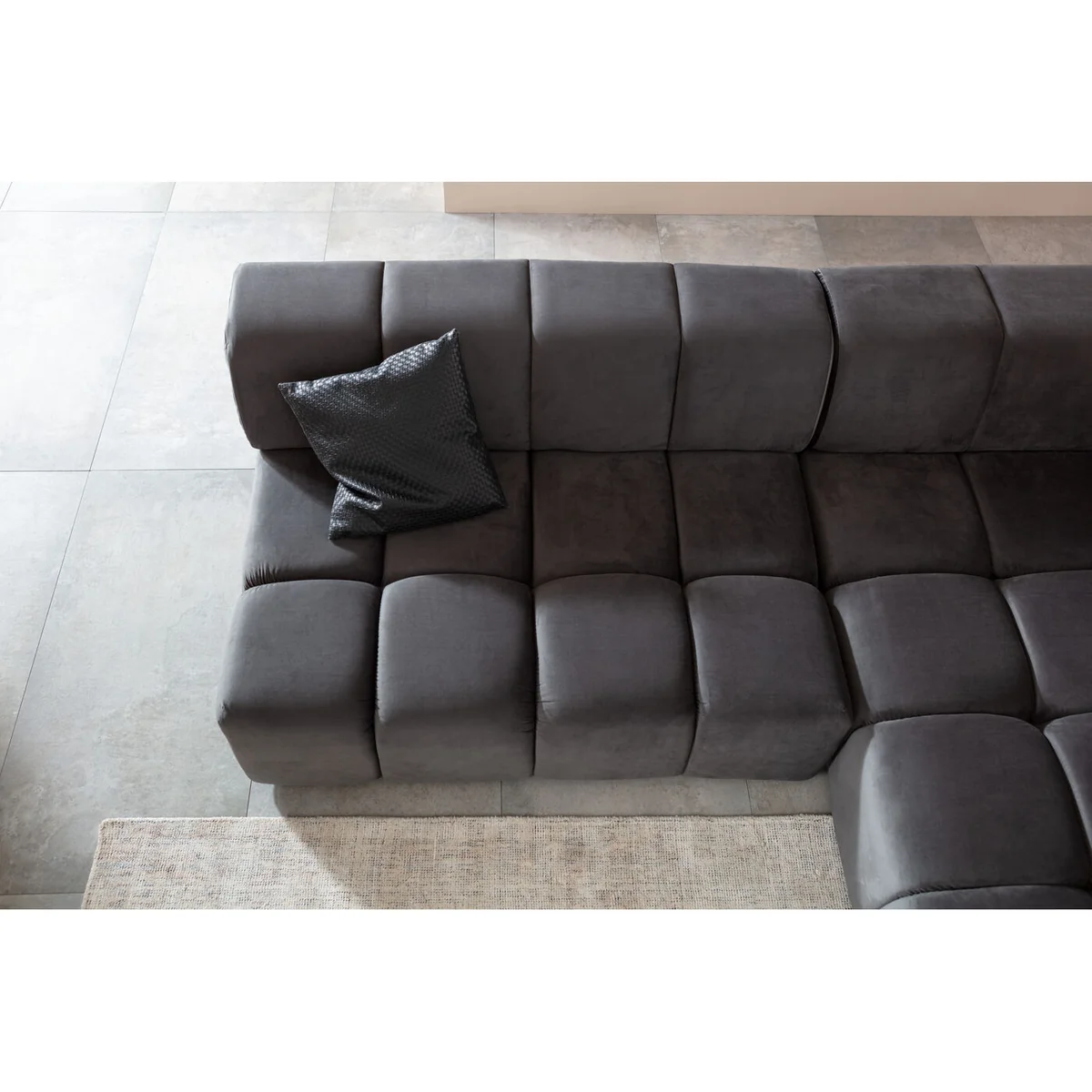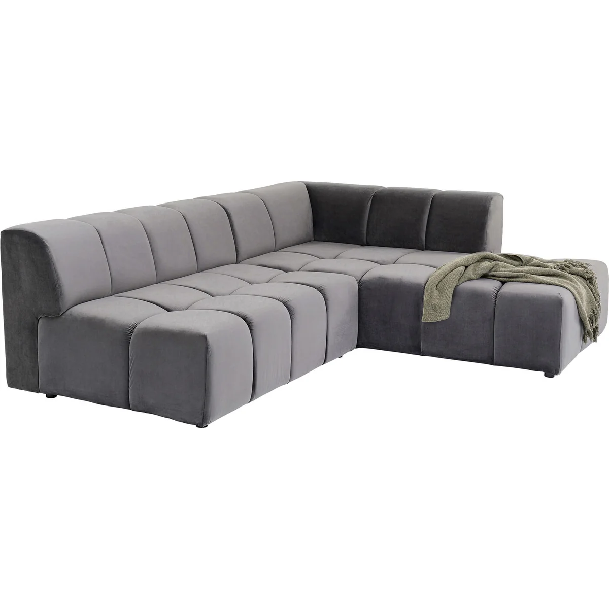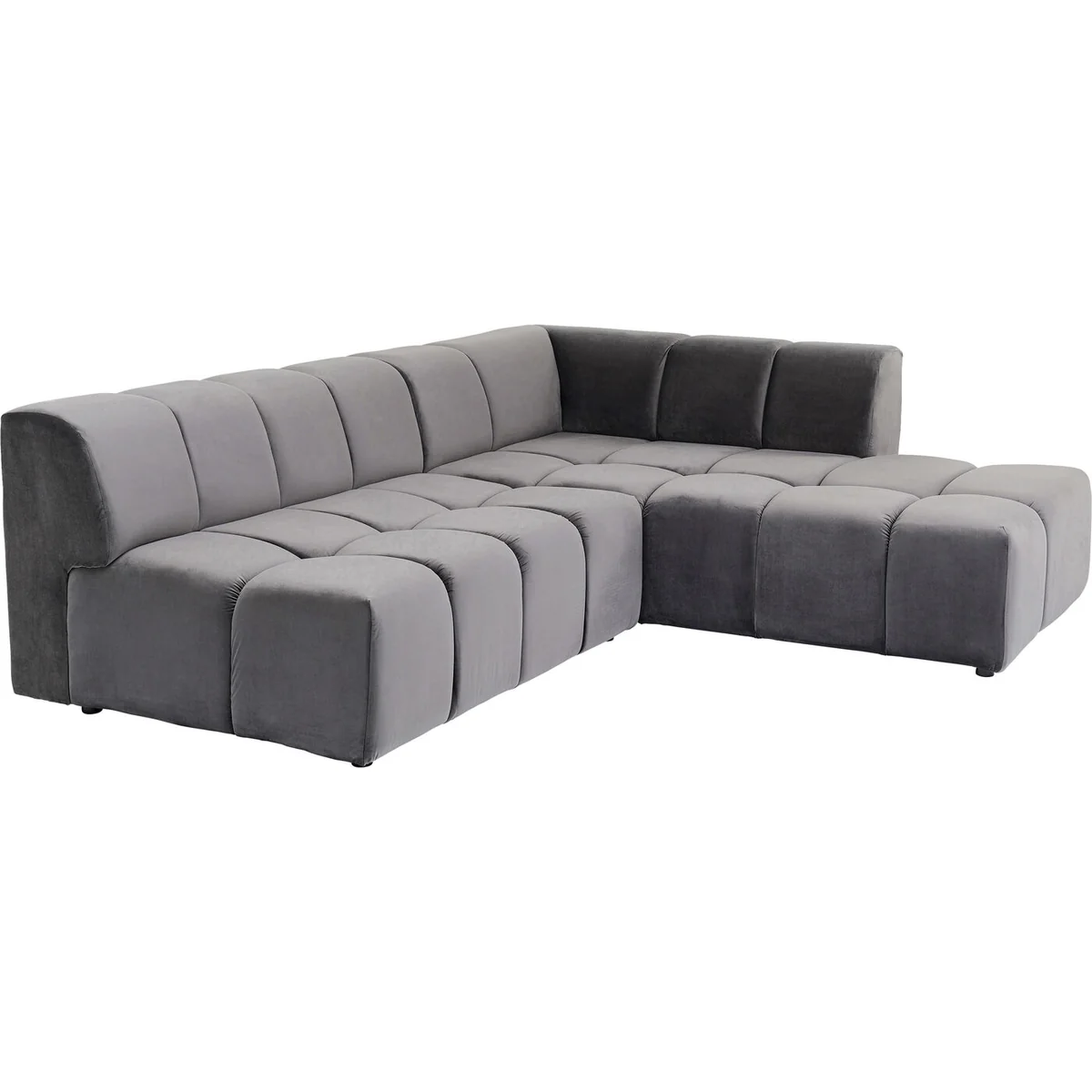 ● Grey corner sofa with chaise longue on the right and a velvety cover made of easy-care synthetic fibre ● No matter which way you turn, this richly upholstered couch with ottoman guarantees maximum comfort ● A styling partner for really every style of furnishing, which makes a strong impression with its graphic lines ● A corner sofa always saves space where there isn’t enough room for two single couches ● Styling tip for large living rooms: a designer sofa like Belami also looks good standing freely in the room