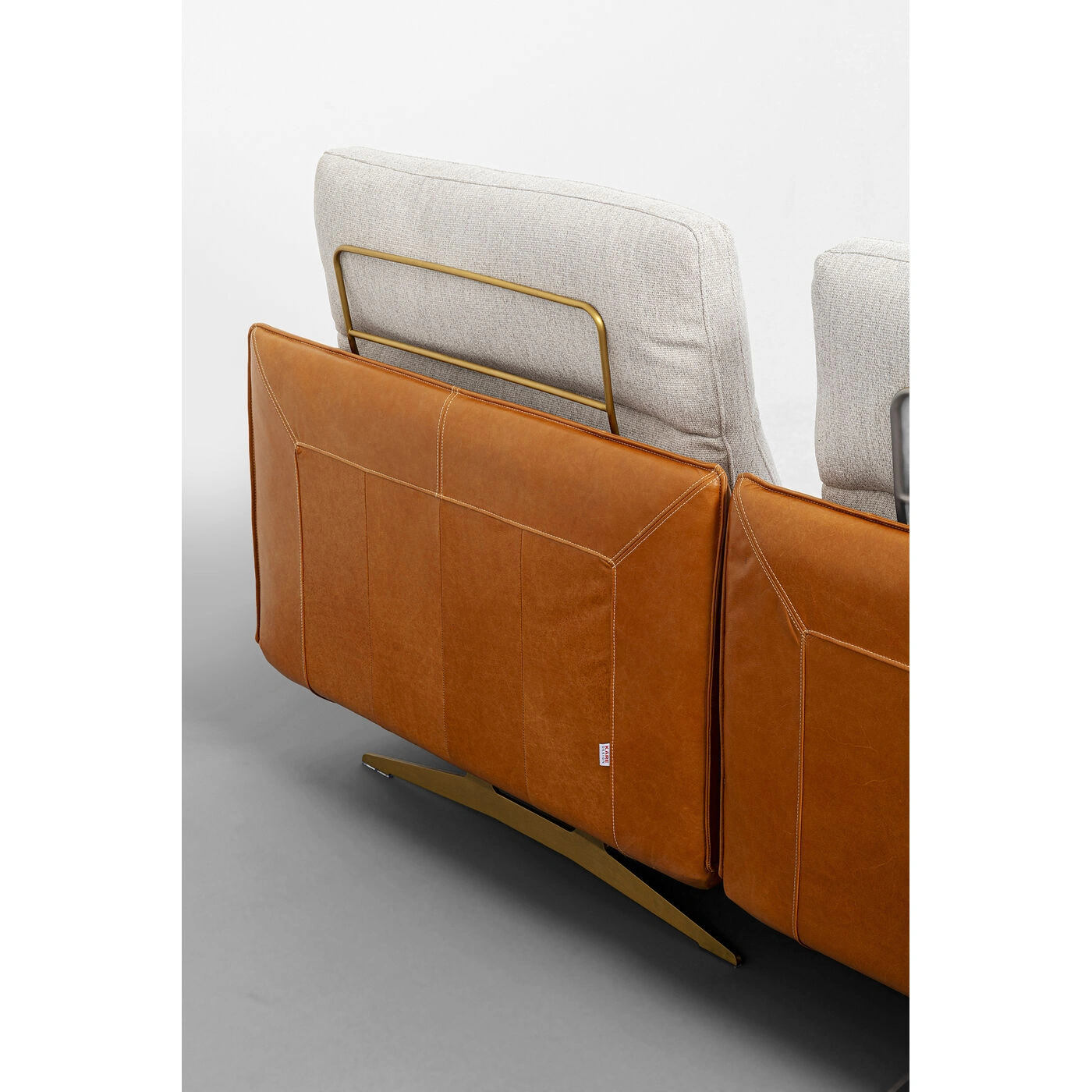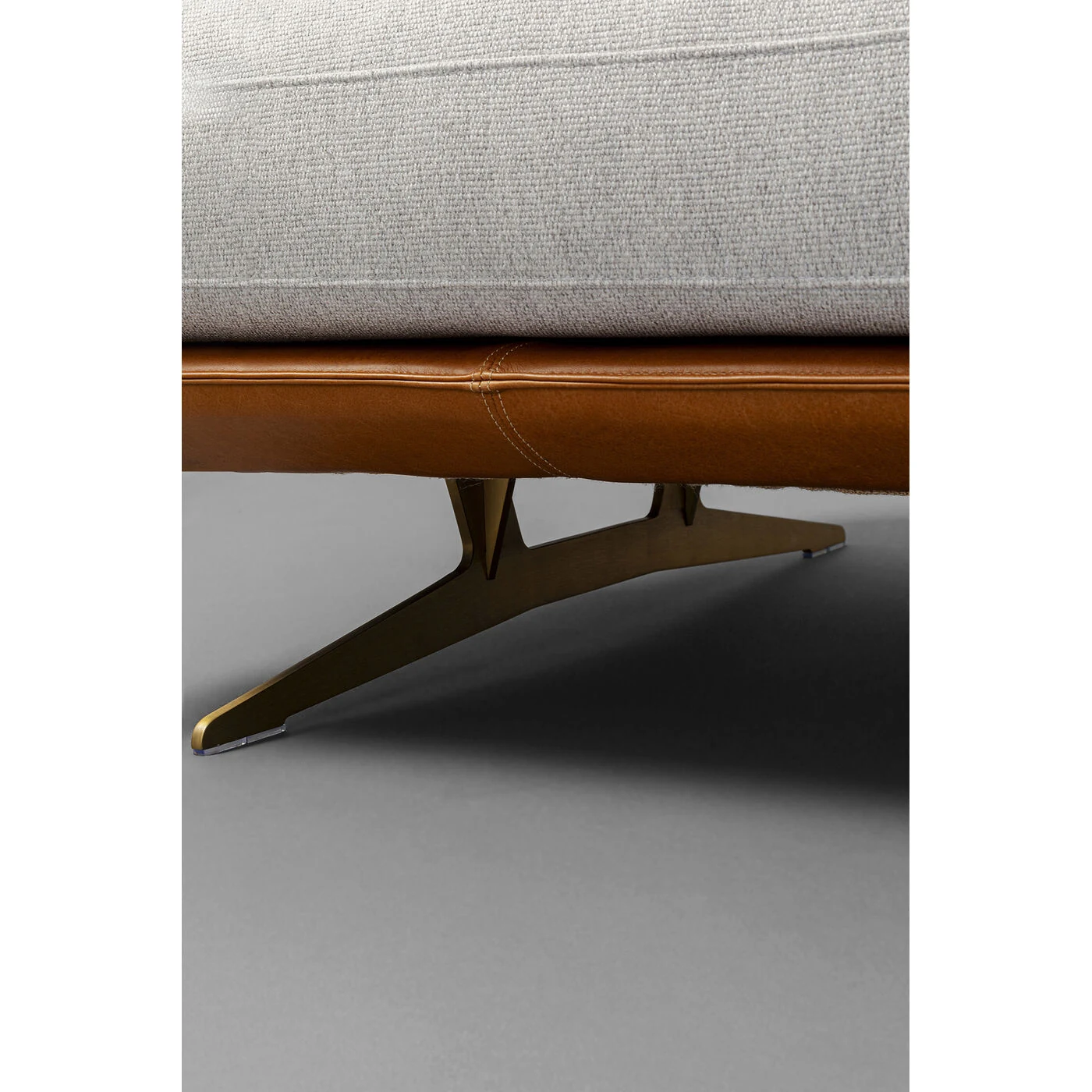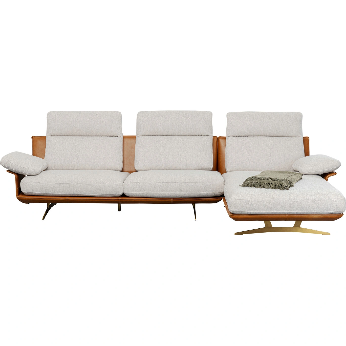 Add a touch of sophistication to your home with the Charles Corner Sofa. Its modern design features clean lines and a soft, neutral beige upholstery, complemented by plush cushions for an inviting feel. Contrasting leather accents and gold-toned metal legs enhance its luxurious appeal, making this piece a standout in any contemporary living room.