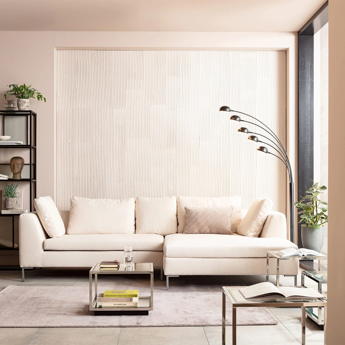 Bring comfort, style, and practicality together with the Gianni Corner Sofa in cream, featuring a right-side chaise for effortless lounging. Designed as a compact yet generously cushioned corner solution, this modern classic invites you to sit back, stretch out, and enjoy its ultra-comfortable feel. The subtly textured fabric brings warmth and elegance to your living room, making it a perfect fit for contemporary homes.