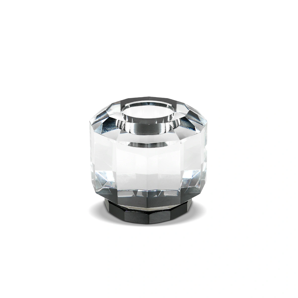 Introducing the Crissy Candle Holder in Clear Black Glass, a minimalist and stylish accent for any home.