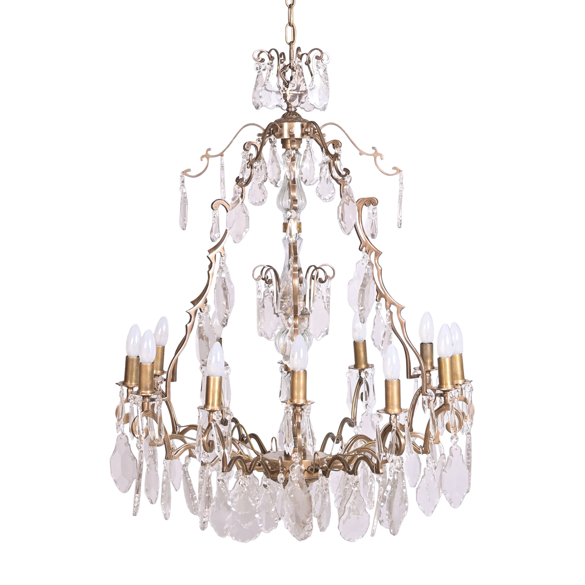 Crystal Chandelier (12 Lights) - Vintage Brass