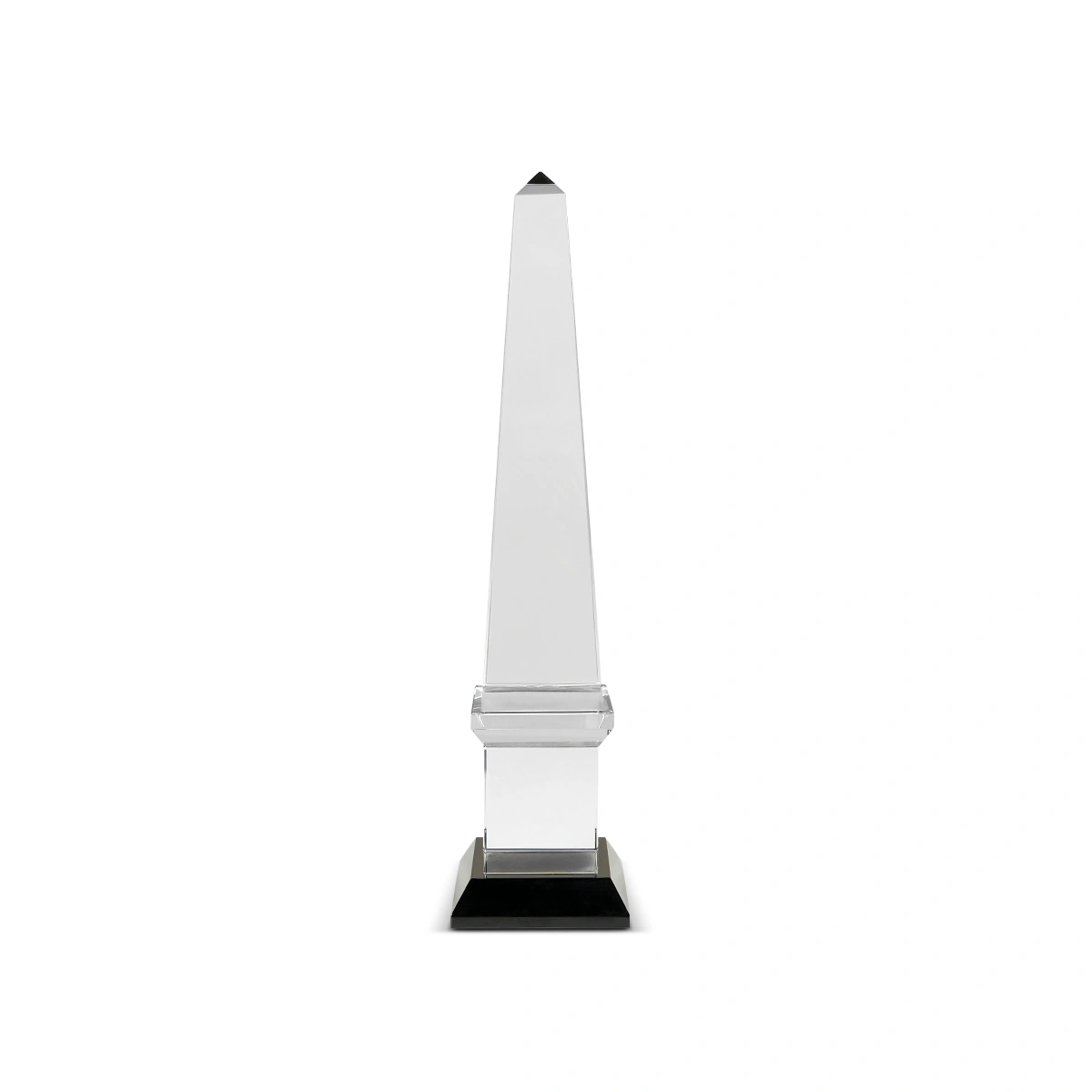 Perfectly suited for modern homes, this clear and black glass obelisk complements any decor style. Best paired with other items from the Crystal collection, it adds a harmonious finish and creates a focal point in any room.