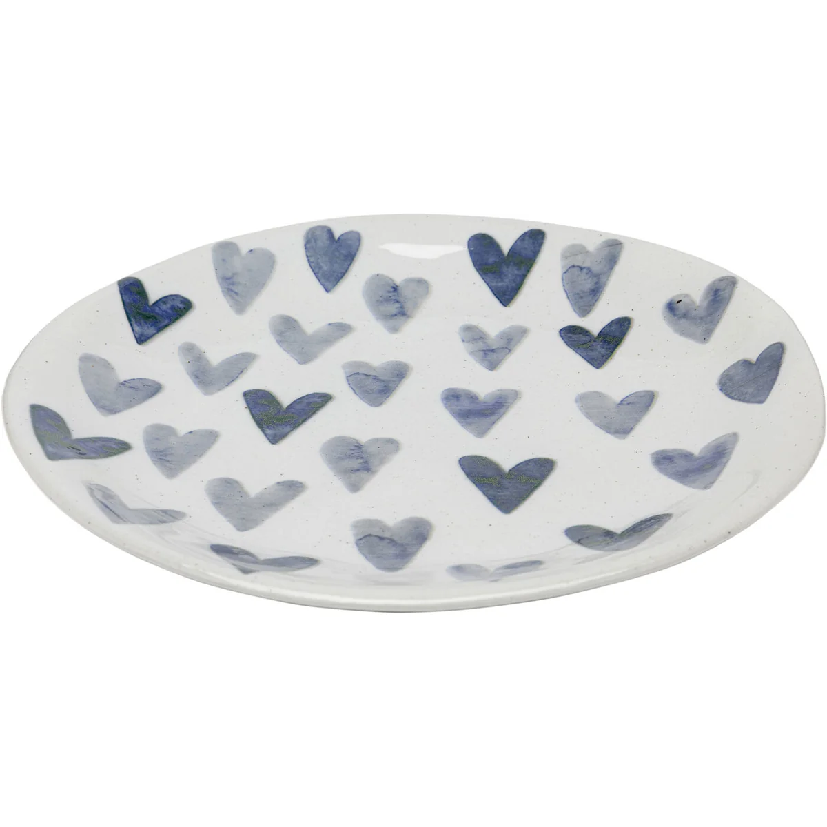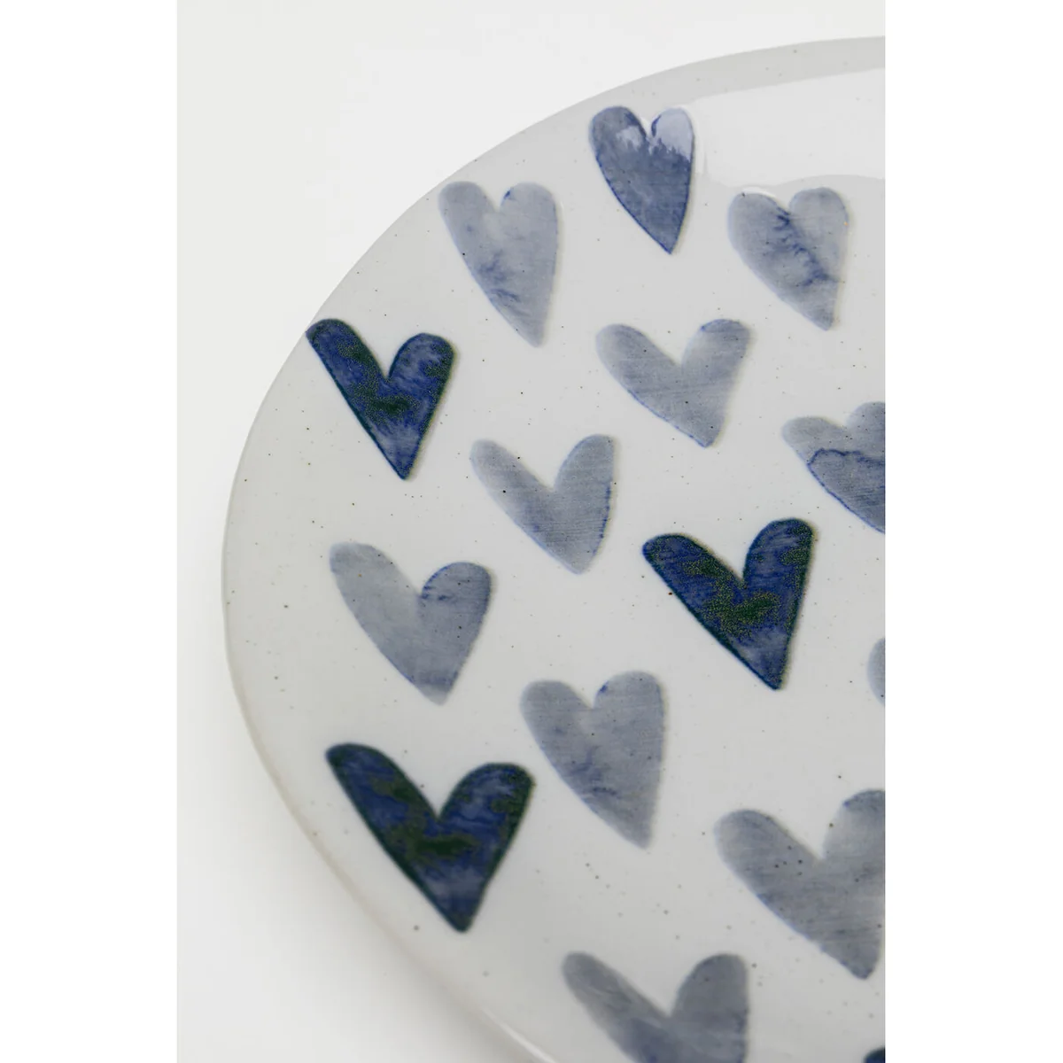 Key features include a hand-painted look with motifs in deep blue that beautifully contrast against a white background peppered with fine speckled details. Measuring 3 x 28 x 28 centimetres, this high-quality ceramic plate is both decorative and functional. It is part of the Cuori series that sets charming accents with its lovely little heart details.