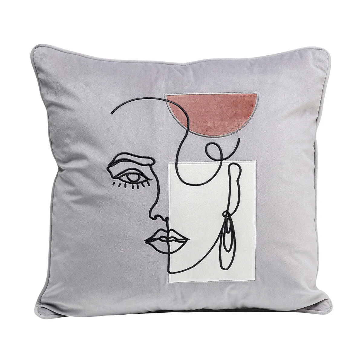 • A velvety soft, square cushion in light grey that gives your sofa a distinctive face • Soft to the touch yet easy to care for, the cover can be removed in no time thanks to the zip • The piping forms a picture-perfect frame for this elegant decorative cushion • The graphic line drawing and geometric shapes create a gallery flair in the living room • Harmonises best with other cushions in neutral or bold colours without patterns