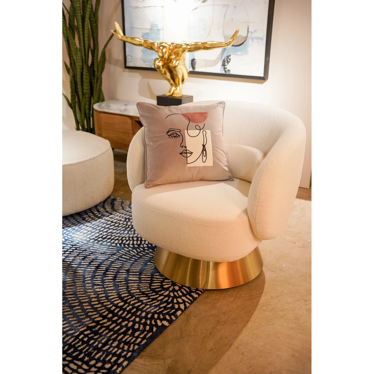 Mademoiselle transforms the sofa into a display area for modern art and forms its centrepiece. The square sofa cushion is a quick update for the living room with great impact for the entire area. Line drawings and faces are a hot decorating trend that certainly won't go away anytime soon.