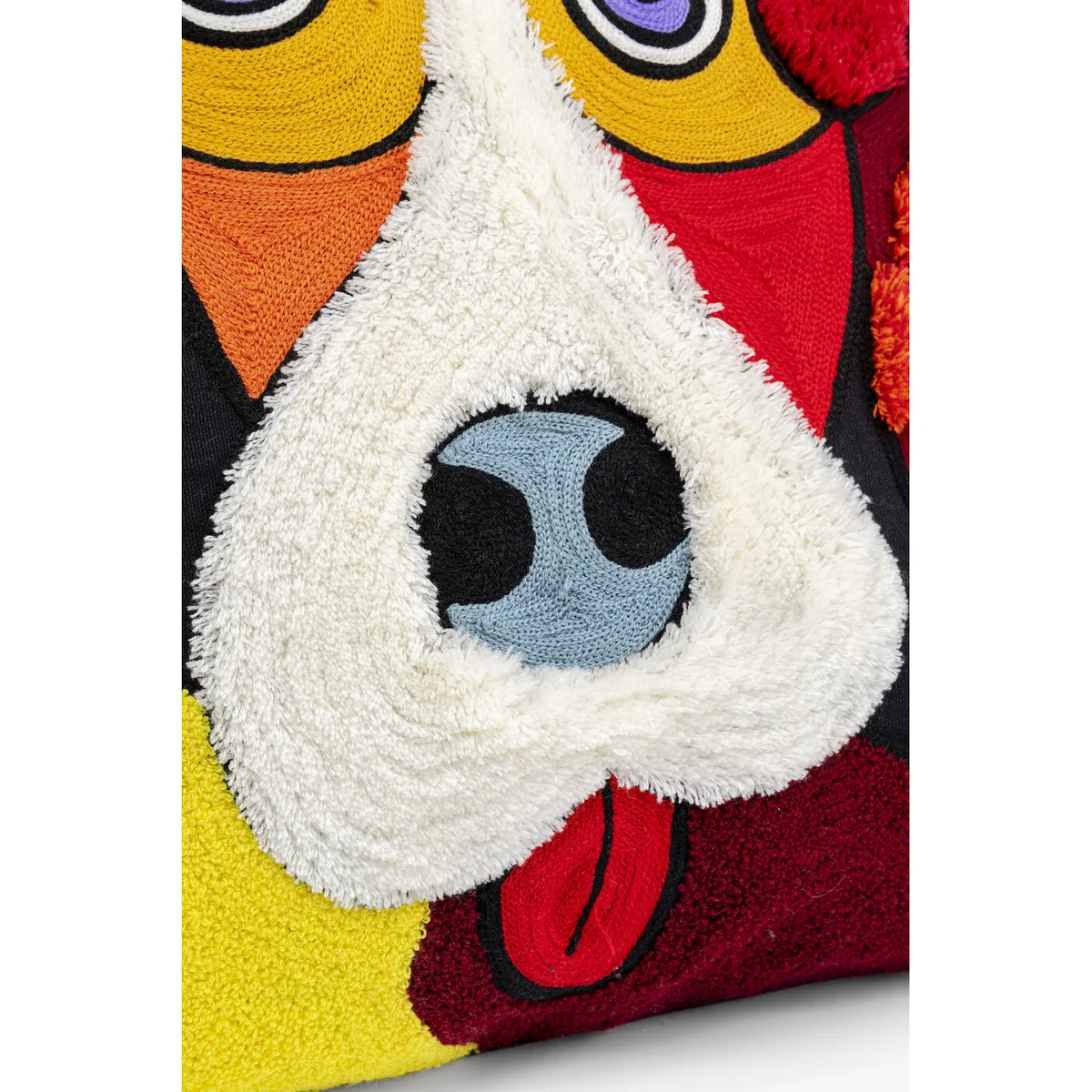 • A colourful decorative cushion for the couch measuring 45x45cm • An exciting mix of embroidered, fluffily tufted and woven surfaces • A witty canine motif with flowers and dots made of wool and cotton • The cover can be removed thanks to the zip fastener • Filling cushion included