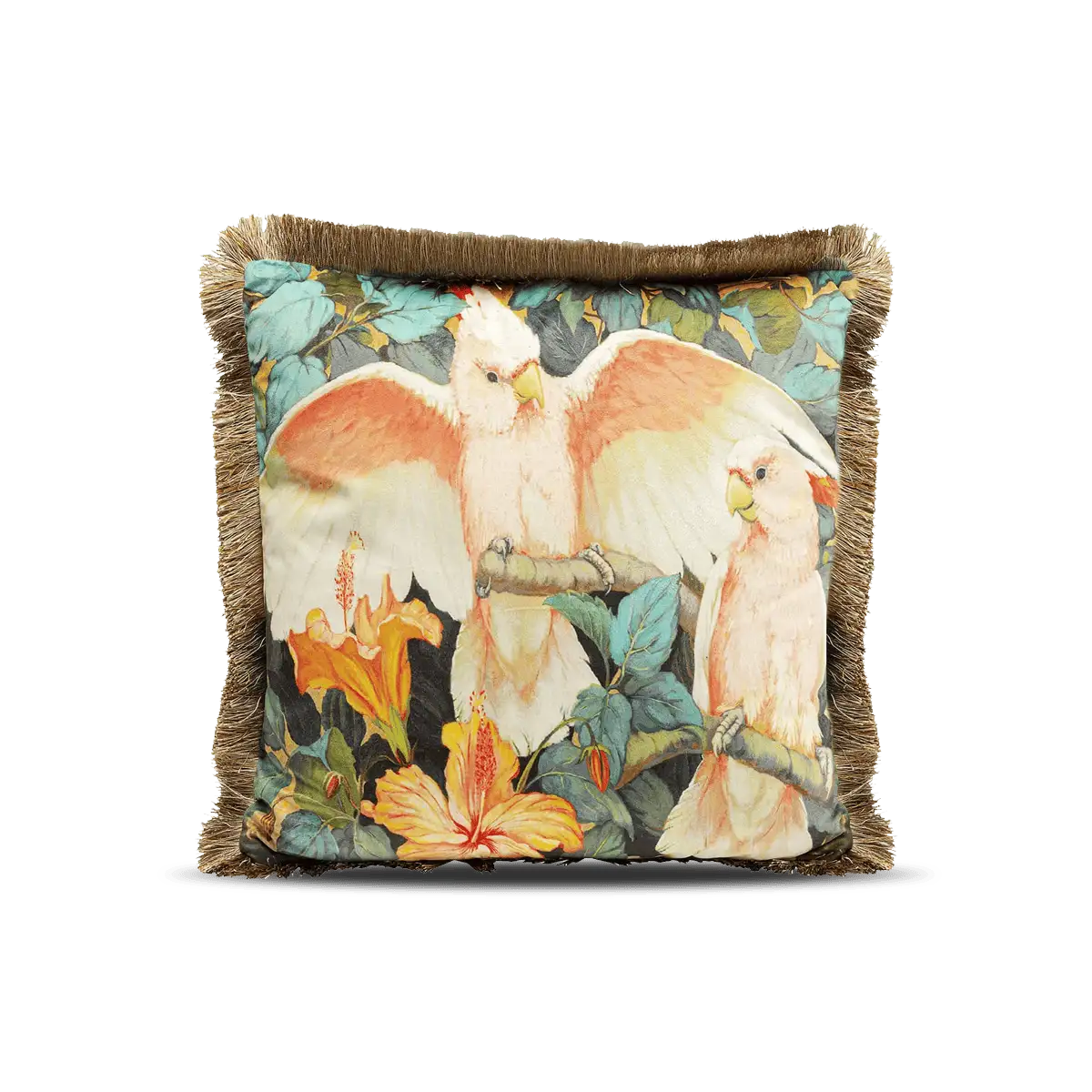Experience the vibrant touch of the Multicolor Parrots Life Polyester Cushion. This 45x45 cushion is designed with a lively parrot pattern, bringing a playful charm to your home decor.