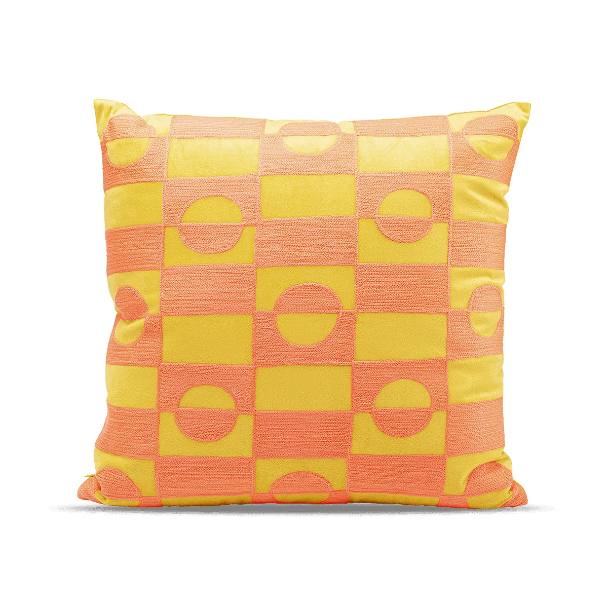 Our orange decorative cushion features a geometric motif and dimensions of 45 x 45 x 12 centimetres (H/W/D). It boasts symmetrical shapes and dynamic lines for an unusual accent. Crafted in rich orange, it's a modern splash of color on your couch, bed, or armchair. Its carefully handcrafted cover, made of 100% polyester velvet, is removable with a zipper. Plus, the comfortable filler cushion is included.
