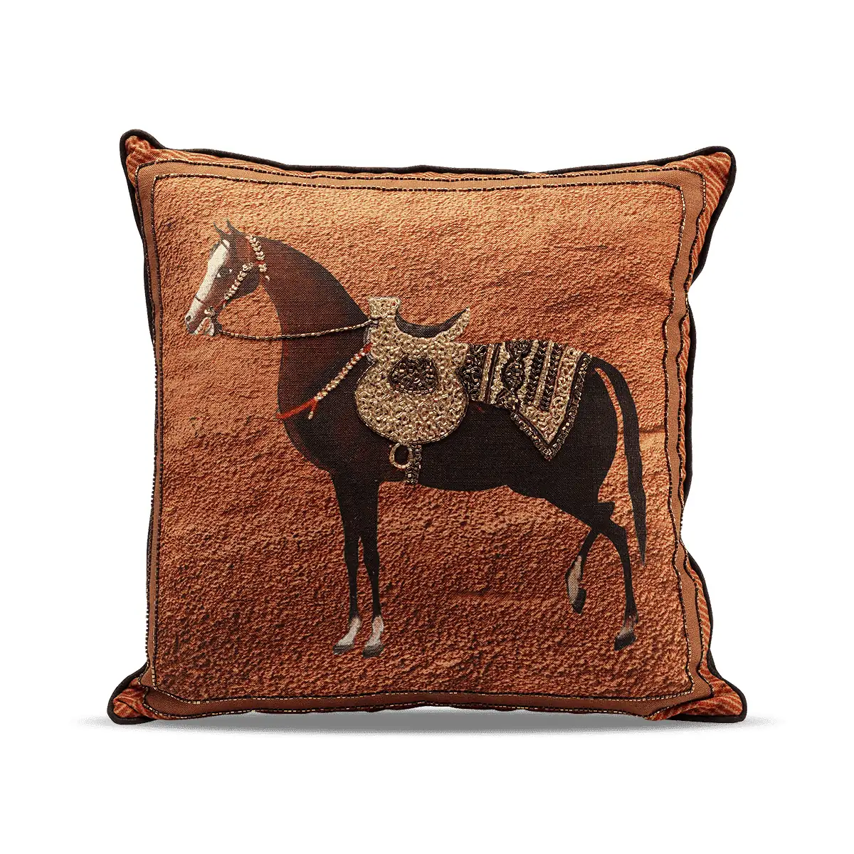 Introduce a striking accent to your living spaces with our Show Horse Cushion in Orange Velvet. This unique decorative element is an amalgamation of lavish design and comfort, perfect for any interior setting.