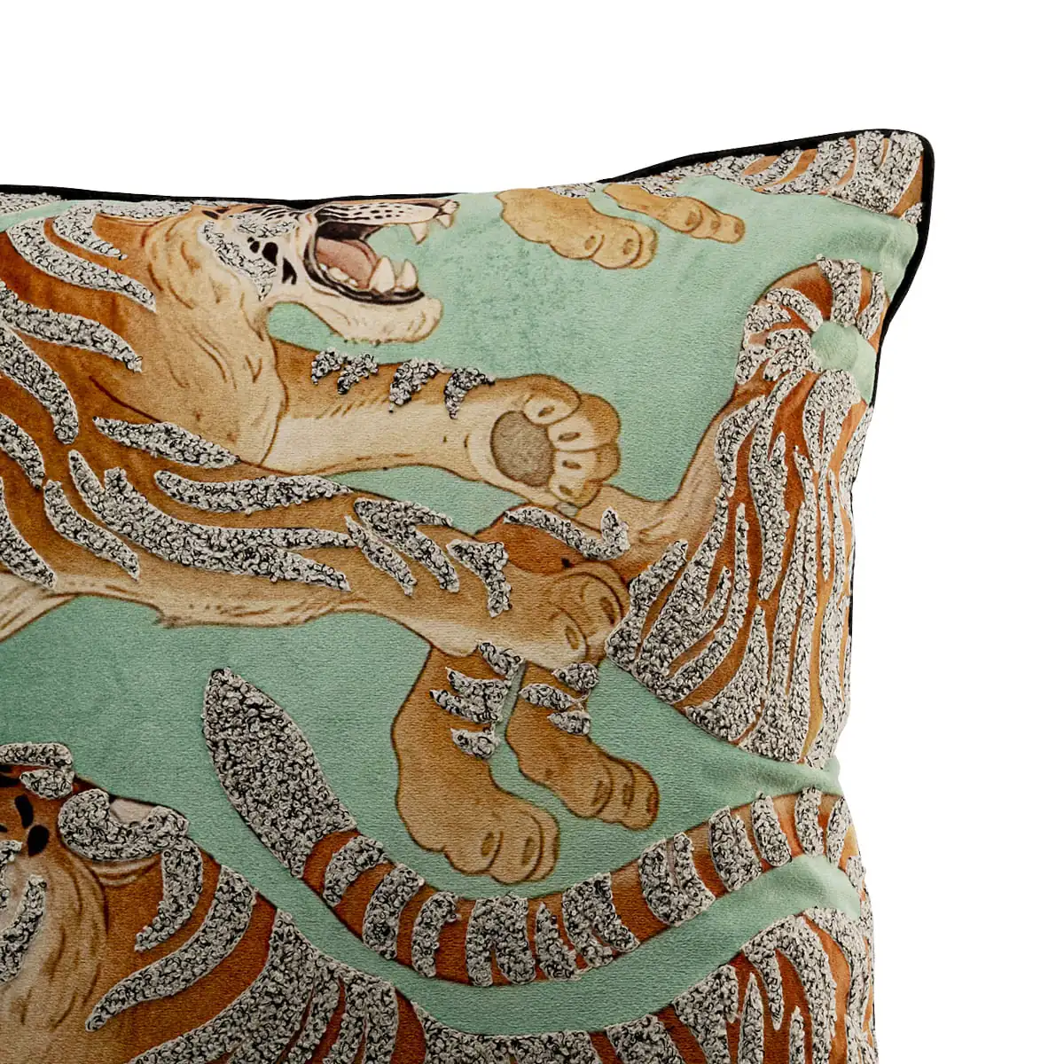 Tiger Love Cushion in Green Velvet, 45x45x25 cm