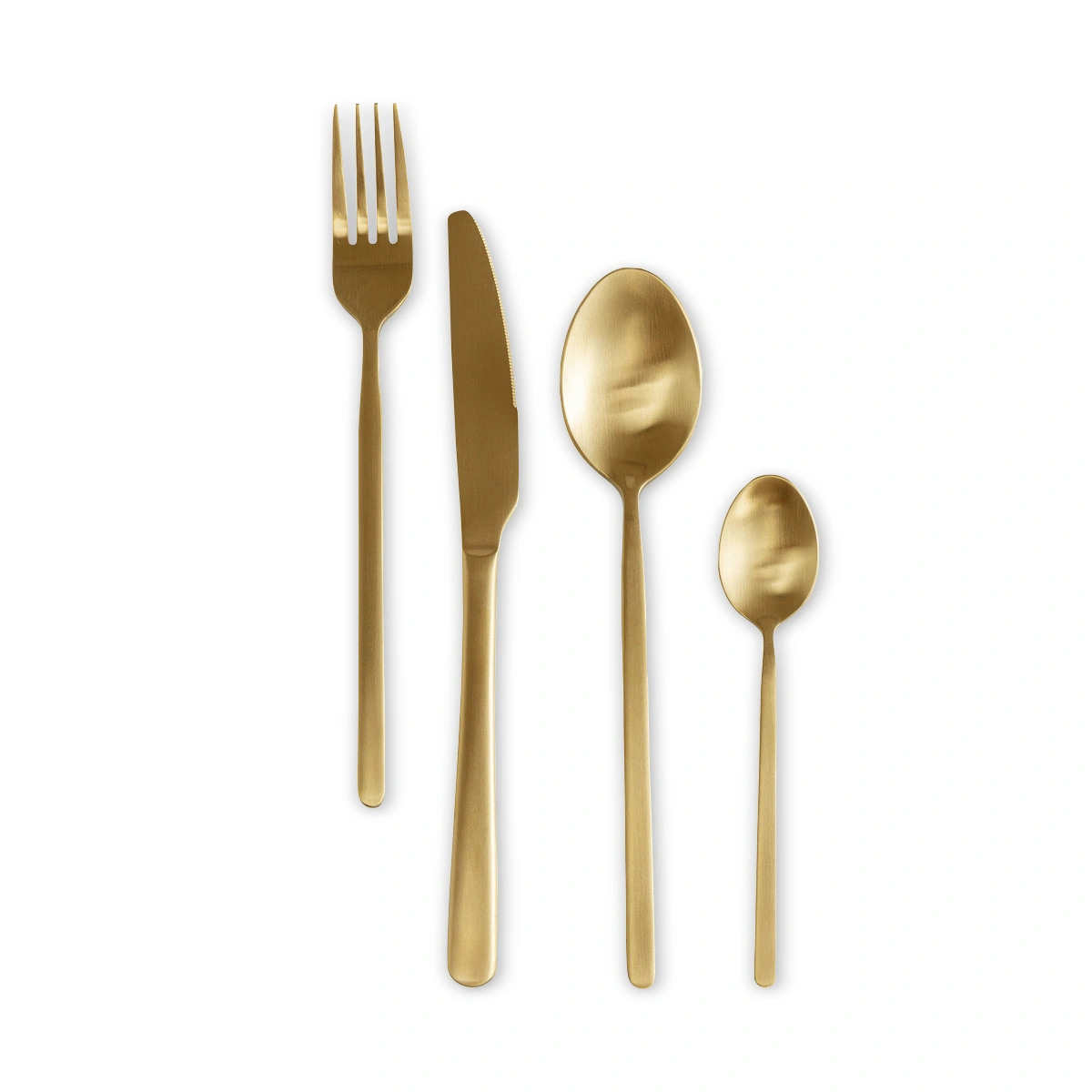 • 16-piece stainless steel cutlery set in a modern design and with a matt brass finish