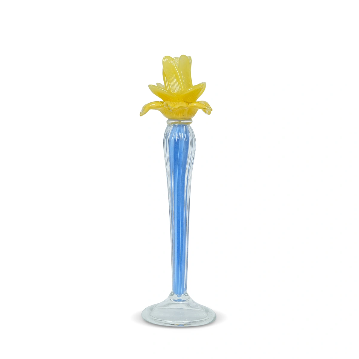 Illuminate your space with the Small Dax Flower Candle Holder in Blue Glass. This charming piece is not only functional but also adds an element of organic beauty to any room.