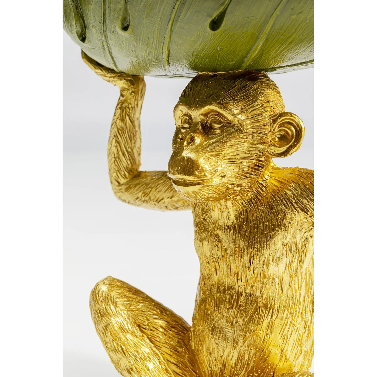 • Hand-painted: the golden monkey and its rich green banana leaf bowl are lovingly decorated by hand • Monkey animal figure: the helpful primate skilfully complements the urban jungle style • Decorative gold: a radiantly beautiful ornamental figure for the living room, home office or dressing table • The bowl: practical storage for jewellery, snacks, beauty or home office accessories • Gift idea for animal lovers: the friendly monkey is a fun idea for a present