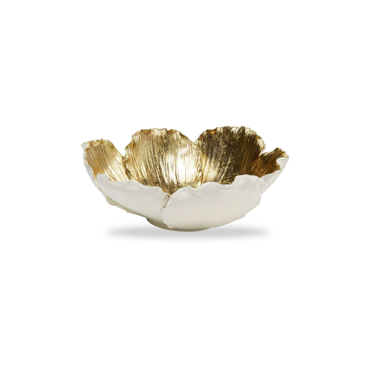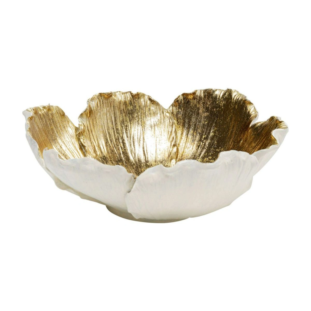 • Decorative bowl in off-white and gold, sized 9.5 x 23.8 x 25.4 cm (H/W/D)