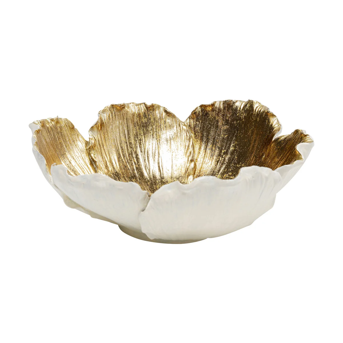 • Decorative bowl in off-white and gold, sized 9.5 x 23.8 x 25.4 cm (H/W/D) • The shape of a flower gives this bowl its special character • On a chest of drawers in the hallway it's a practical place to put your keys and mobile phone • A unique handcrafted piece, and may differ from the illustration • An original gift idea for any occasion