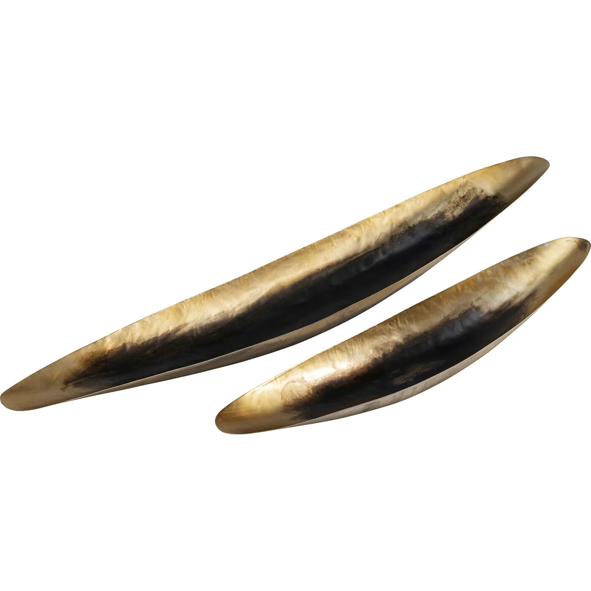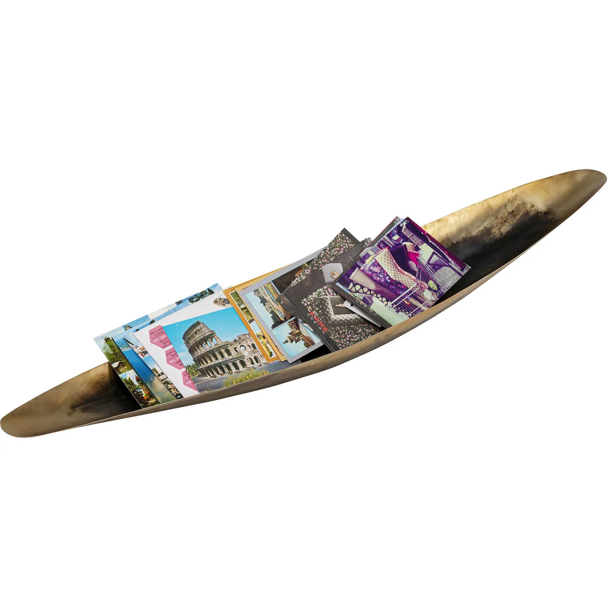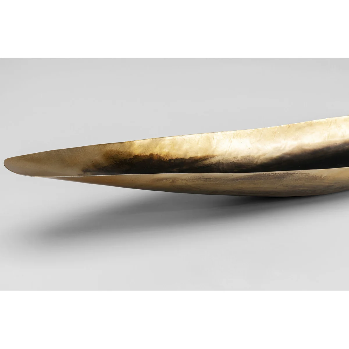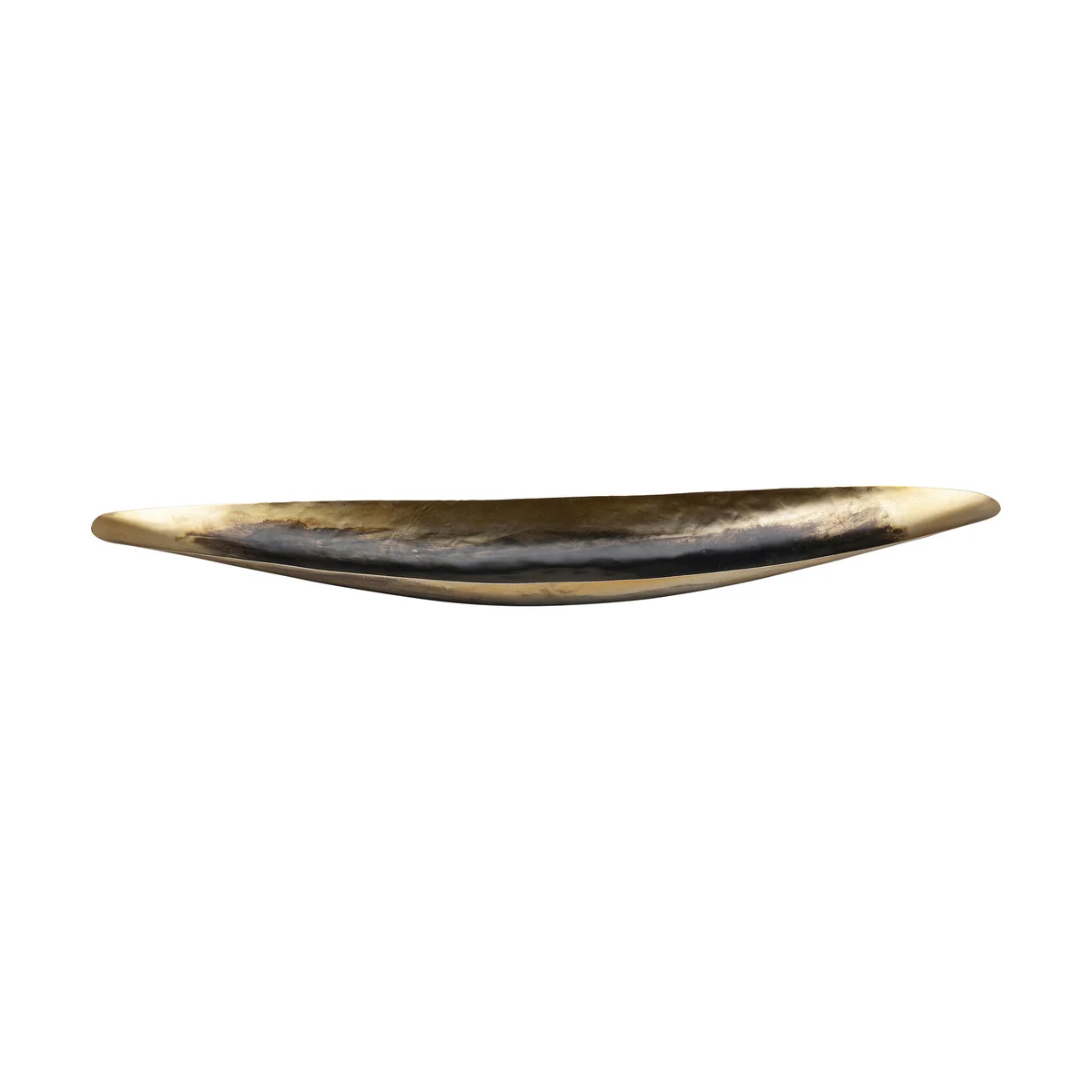 - Elongated decorative dish in gold made of metal, 8 x 86 x 15.5 cm (H/W/D) - An artfully handcrafted, one-of-a-kind piece - Its antique finish and irregular shapes give the metal bowl its special charm - Practical storage on the chest of drawers, sideboard or hallway console table - Are you looking for an unusual table decoration? This dish adds special glamour to the dining table Small changes make a big impact.