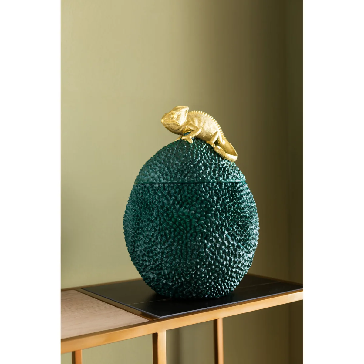 Infuse a touch of uniqueness into your home with the Golden Chameleon Deco Box, a standout piece in polyresin.
