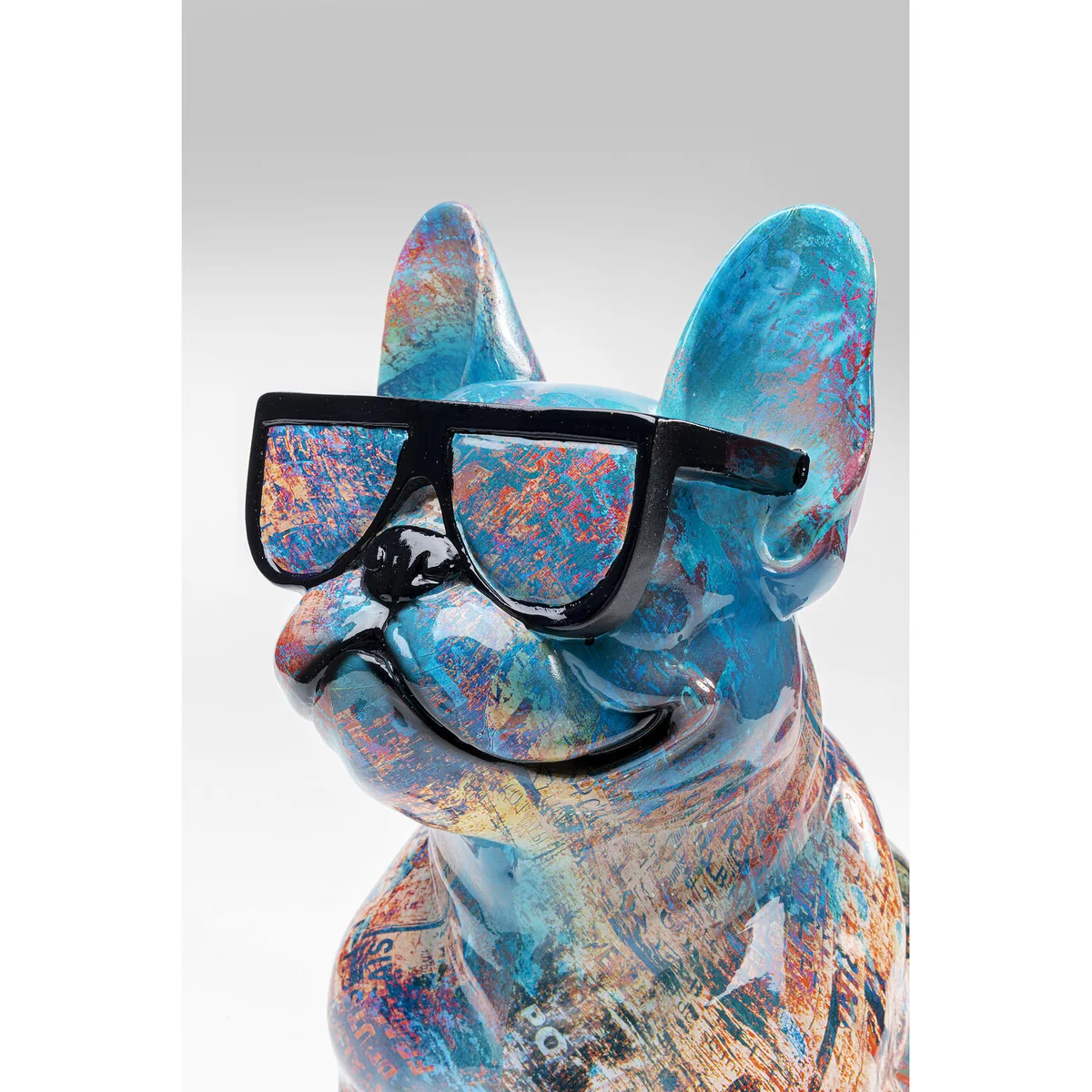 Standing 37 cm tall, this multicolor figurine features a dog wearing sunglasses, made from high-quality Polyresin for durability. Measuring 30 cm by 20 cm, it's the perfect size to make a statement without overwhelming your space.