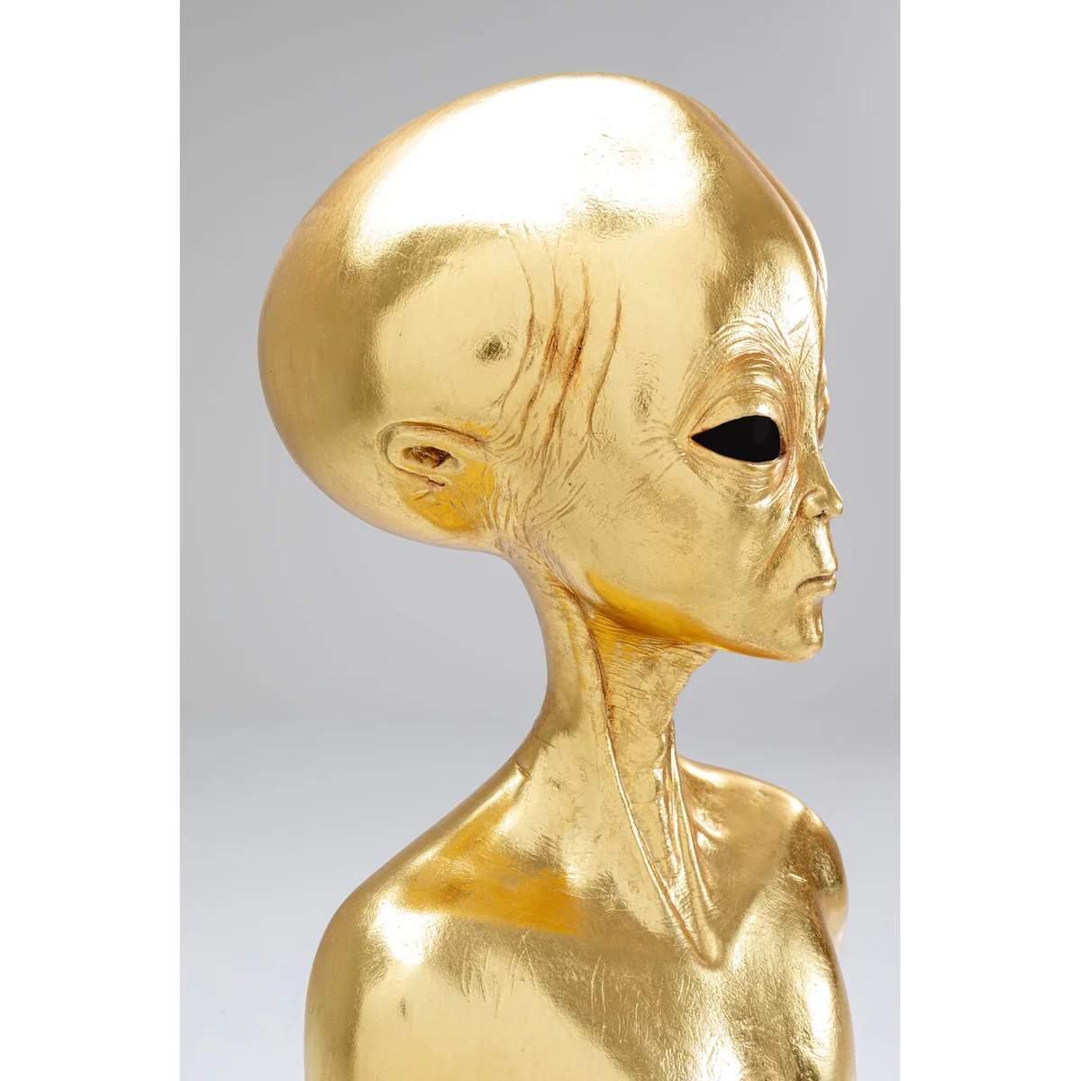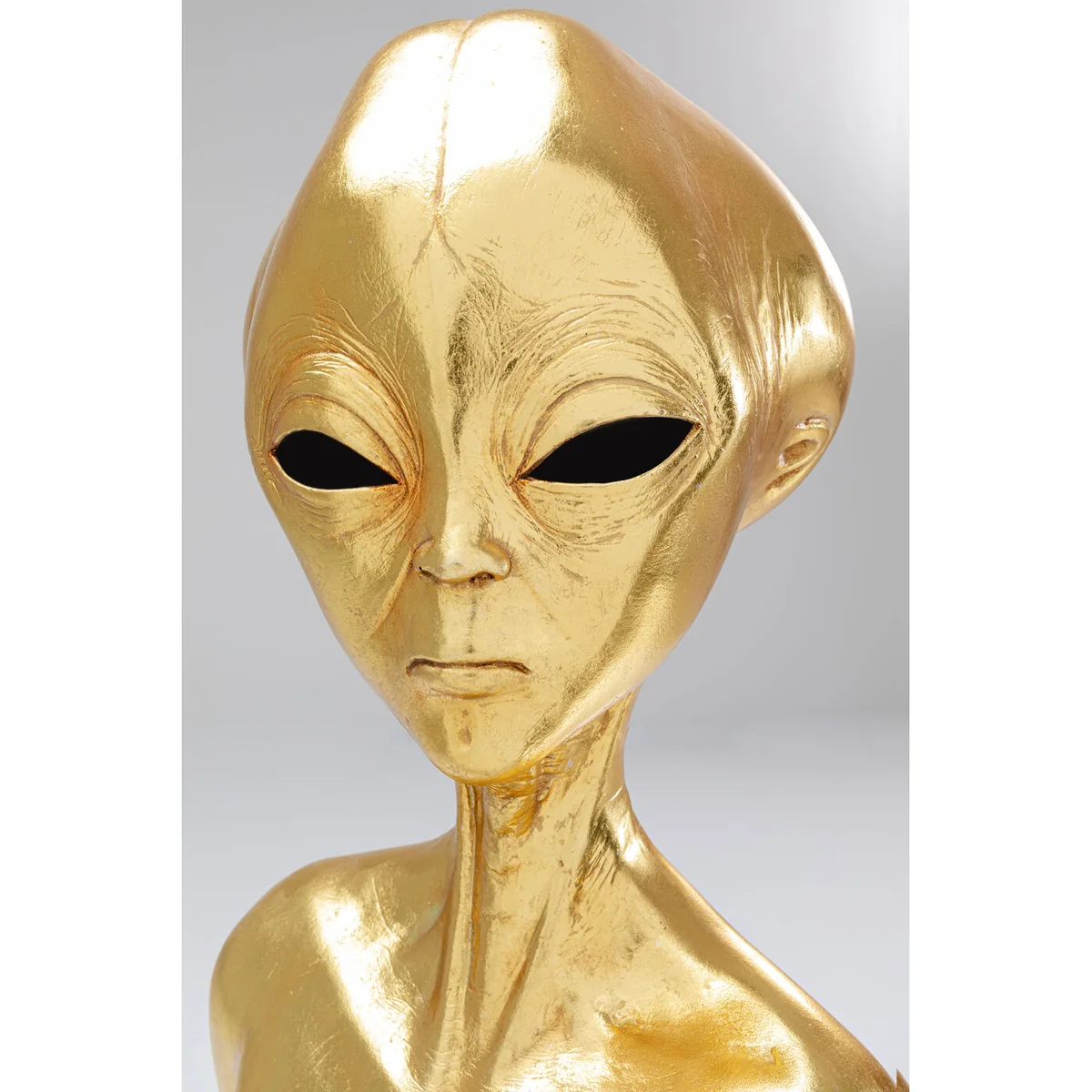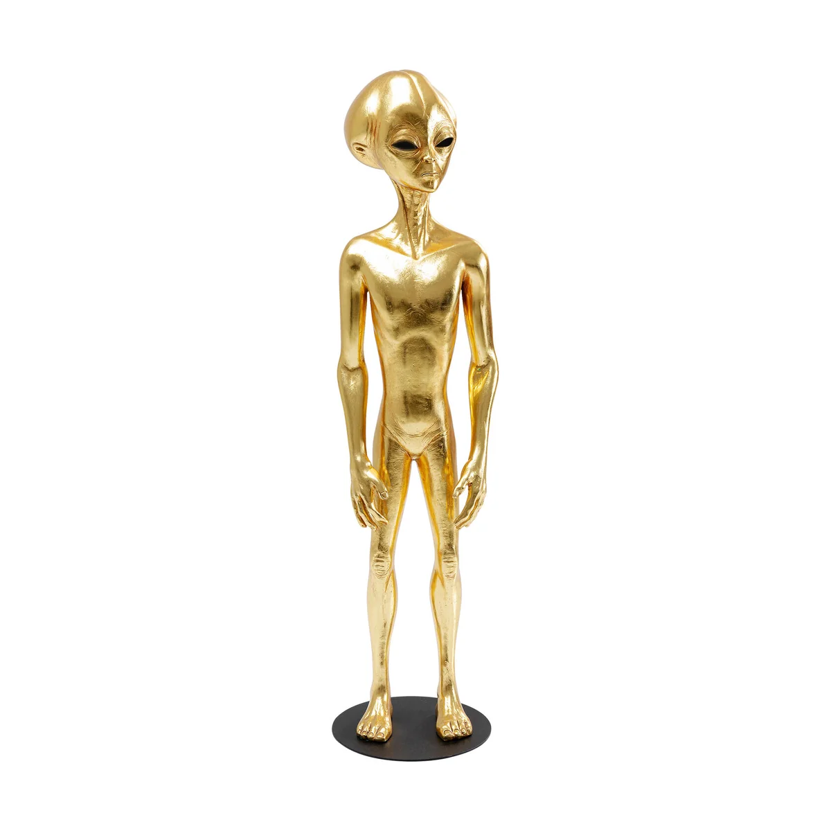 - Eye-catching: as if it came from another star, this decorative object attracts all eyes - XXL decoration in gold: the extra-terrestrial roommate towers around 121 cm in height - Manual craftsmanship: the extraordinary sculpture is crafted by hand. You will therefore acquire a unique specimen - Fine workmanship: the statue is covered with beaten metal in a golden colour - Stable: the decorative object Alien stands sturdily on its black base made of lacquered steel