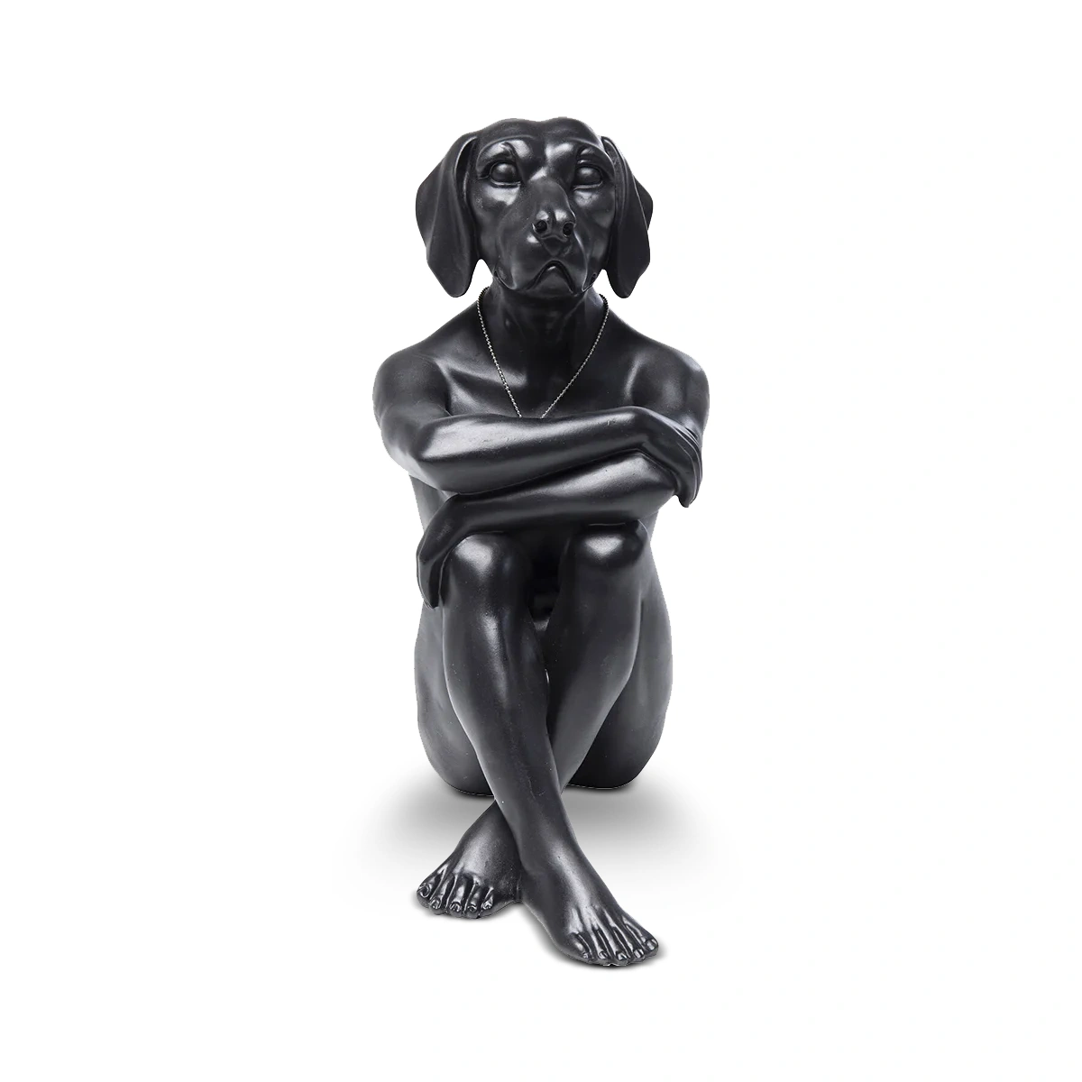 Deco figure: inexplicable animal friendship. Exclusive to us, this figure is everything but ordinary. The object is completely in black and appears both modern and timeless. An inexplicable connection between human and animal. Available in different versions.