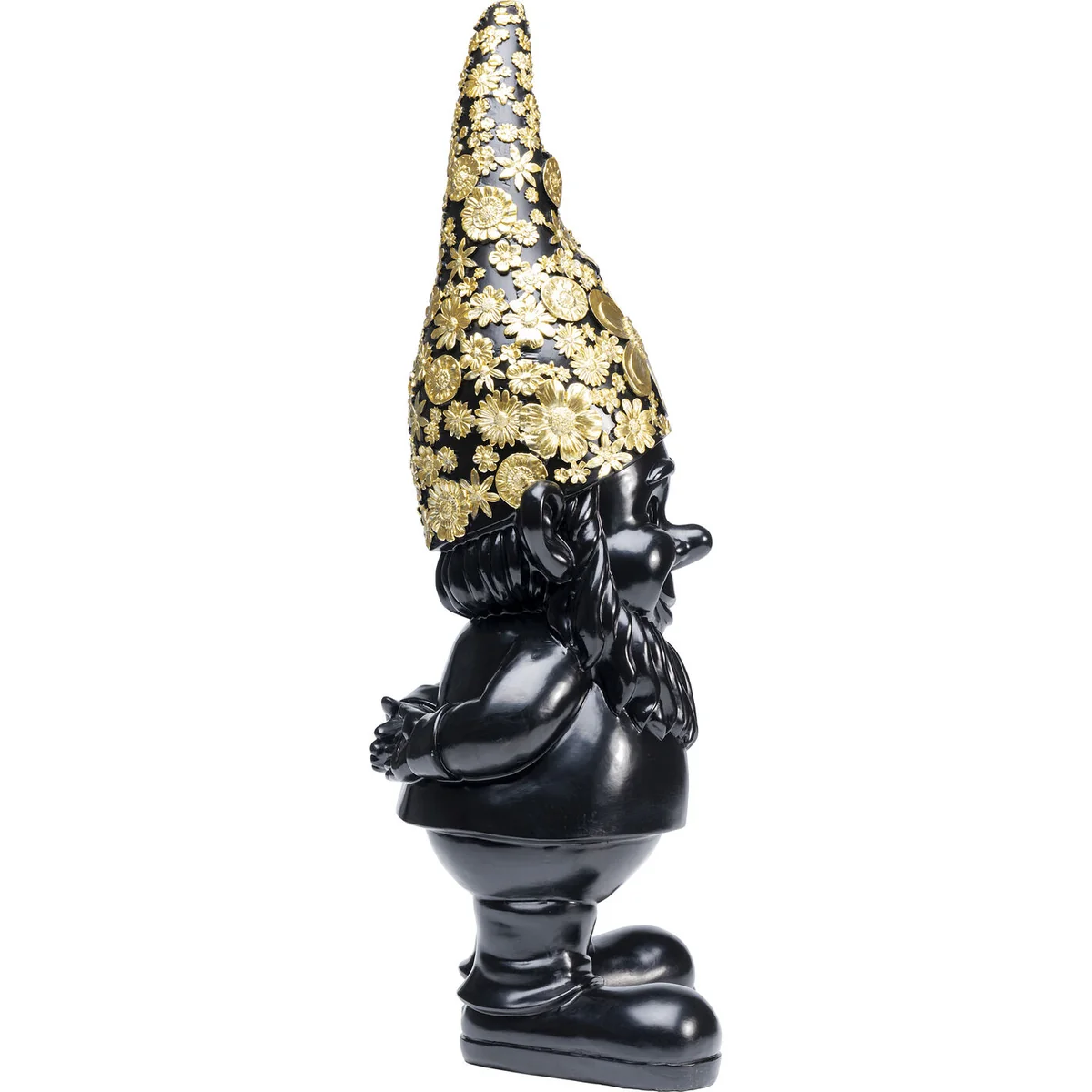 • A large, friendly garden gnome in shiny black and with the most golden pointed cap in the fairytale world • Add a touch of flamboyance to your rooms with this unusual royal gnome • An unusual gift idea for people with a sense of humour • Gold and black transform this classic decorative object into a stylish glamour piece • Gnomes love company, and at KARE you will find stylish garden gnomes in many variations