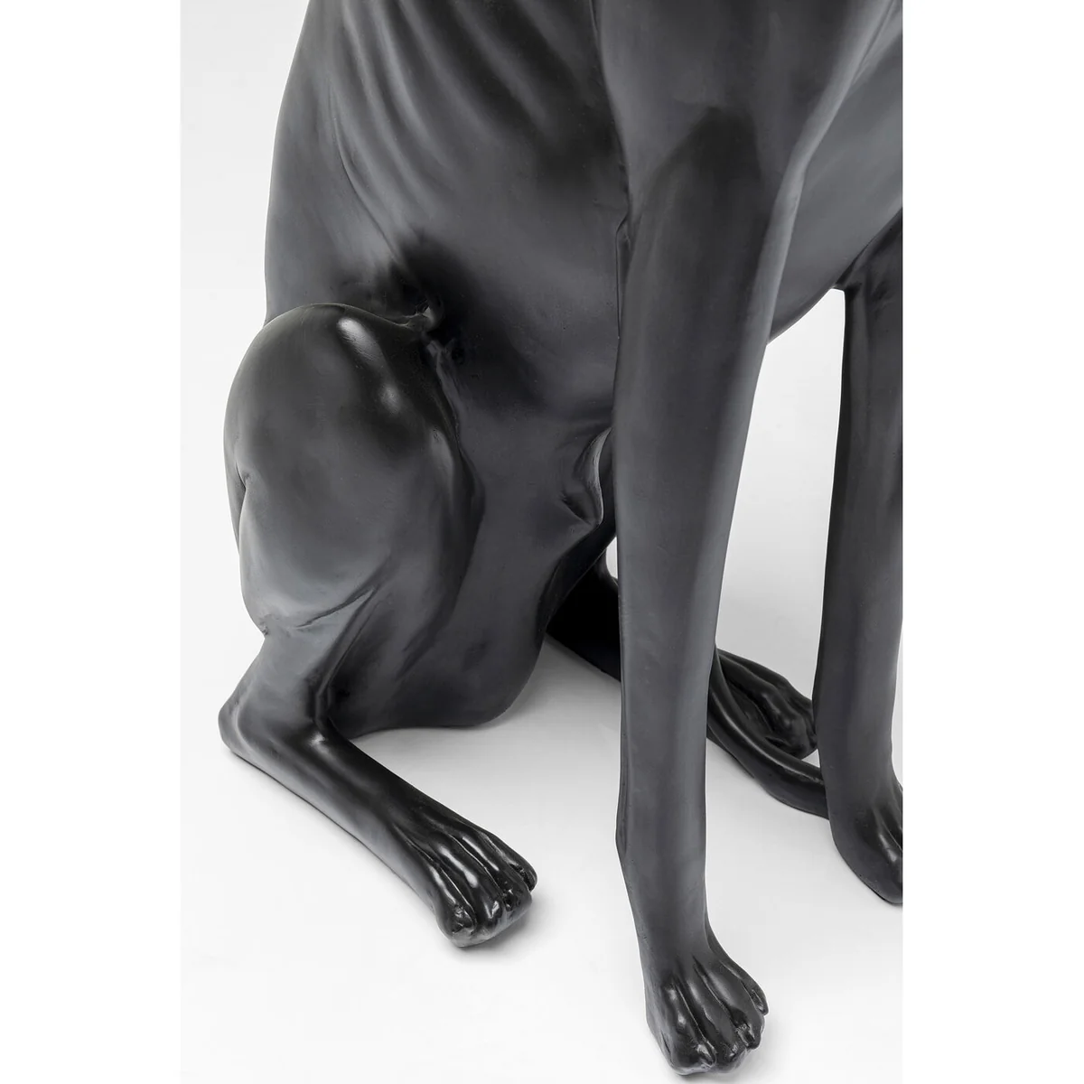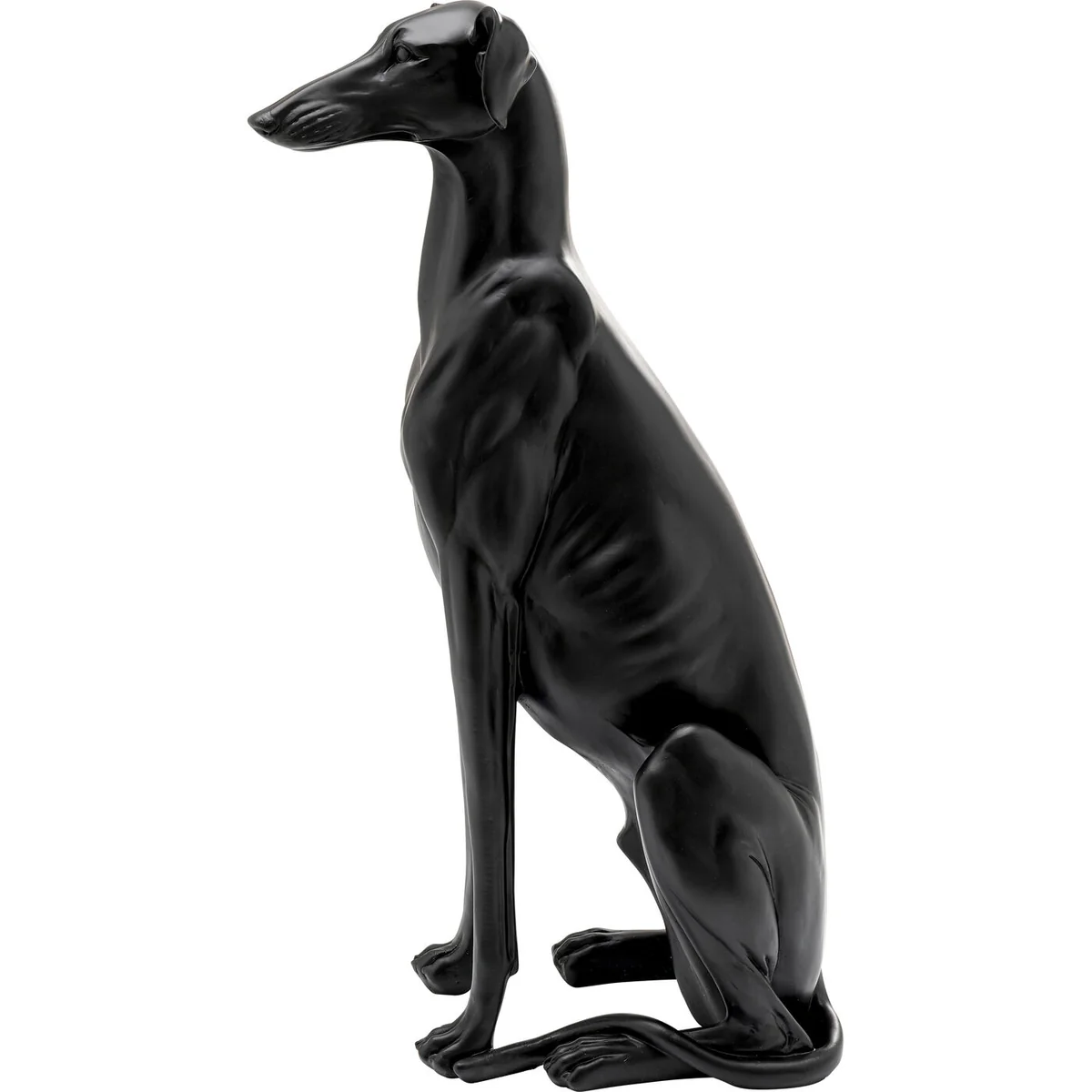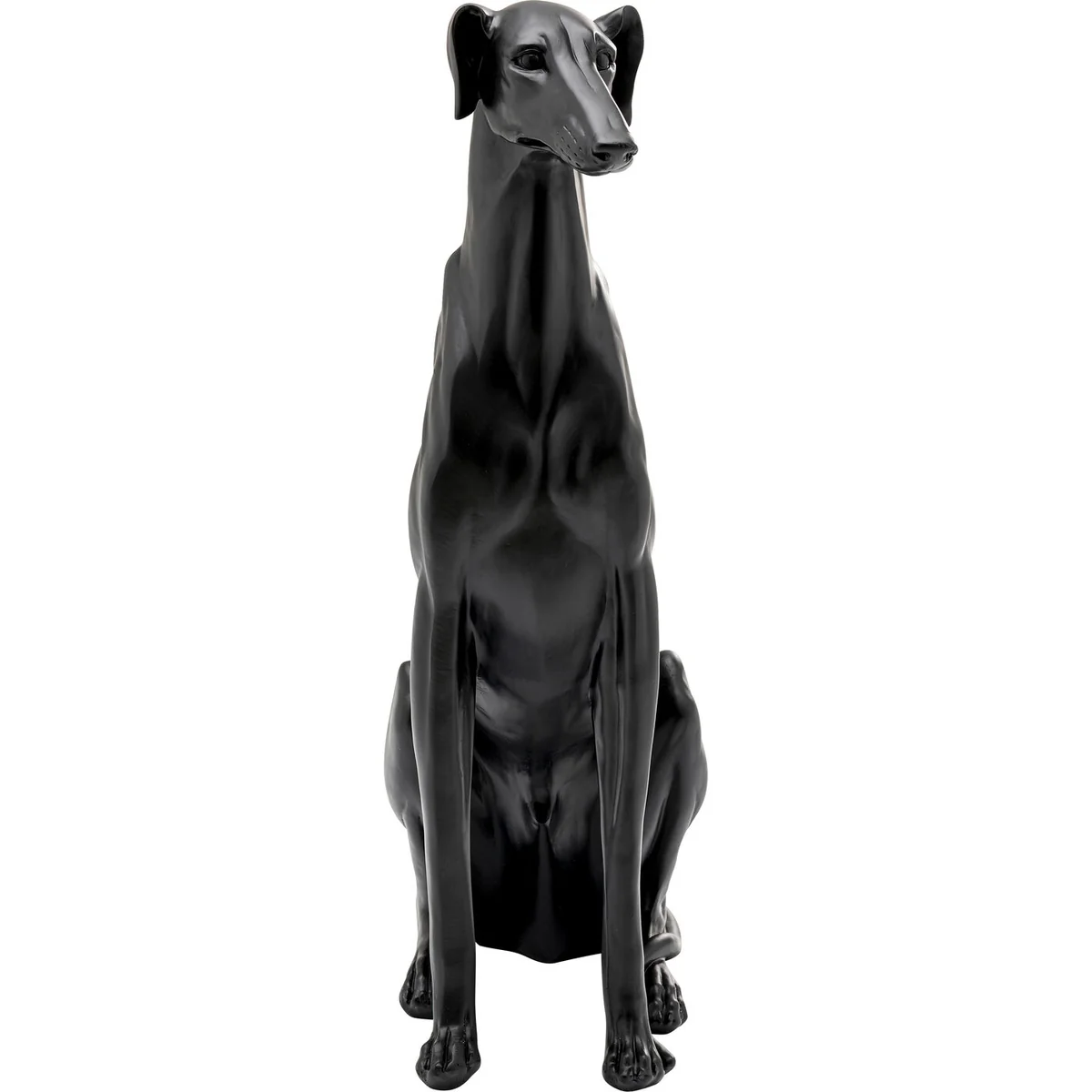 - A black extra-large decorative figure of a greyhound made of cast stone sized 79.5 x 44 x 26cm (H/W/D) - Large enough to make an impression as a decorative statue on the floor - Sculptures in the shape of animals guard the living room landscape or the entrance area - The slender greyhound is handmade and therefore unique - This figure of the dog is ideal next to gold and green plants