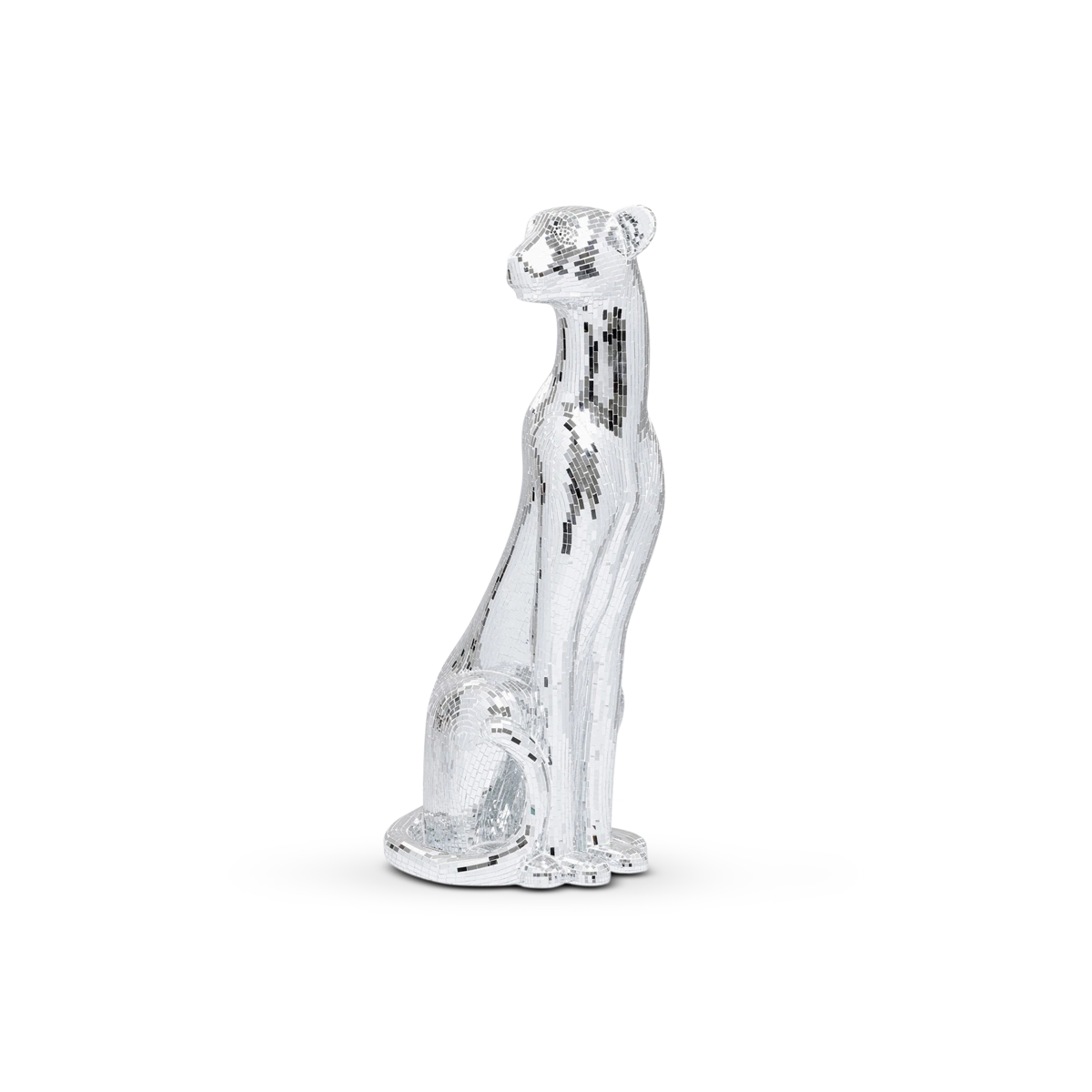 This breathtaking decorative figure of a panther with reflecting tiles is an impressive object for the home and will lend a classy and majestic atmosphere to any room. With a height of approx. 150 cm this figure is a real focal point and will immediately attract the attention of your guests. The mirrors create fascinating light reflections. The advantages of this decorative figure are obvious. Whether you present it in your living room, office, reception area or even in an exclusive shop, the panther is guaranteed to spread an air of classiness and luxury.