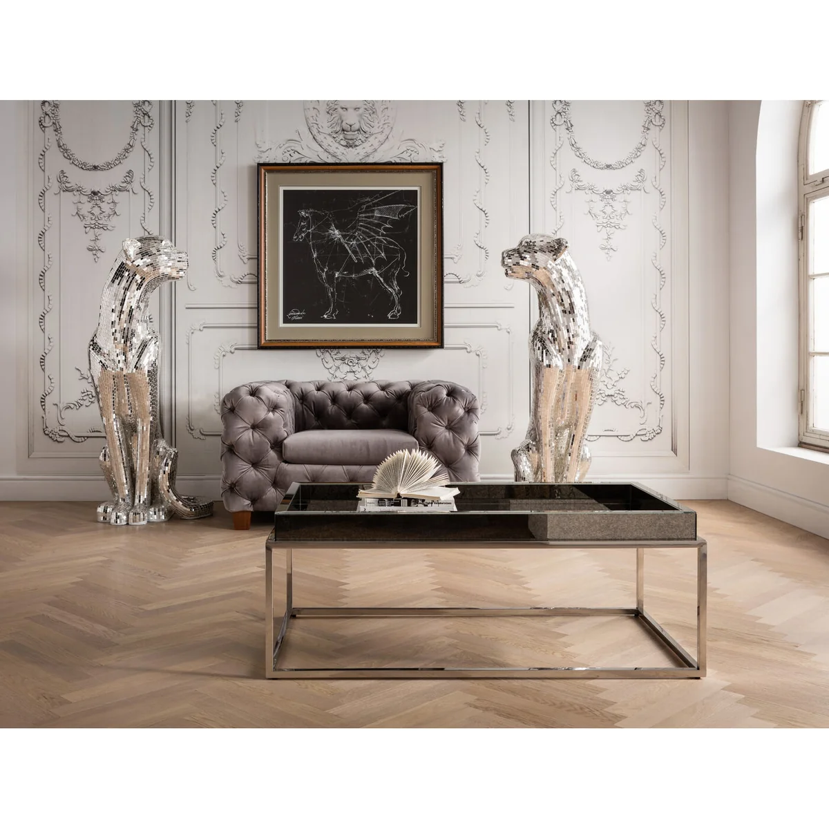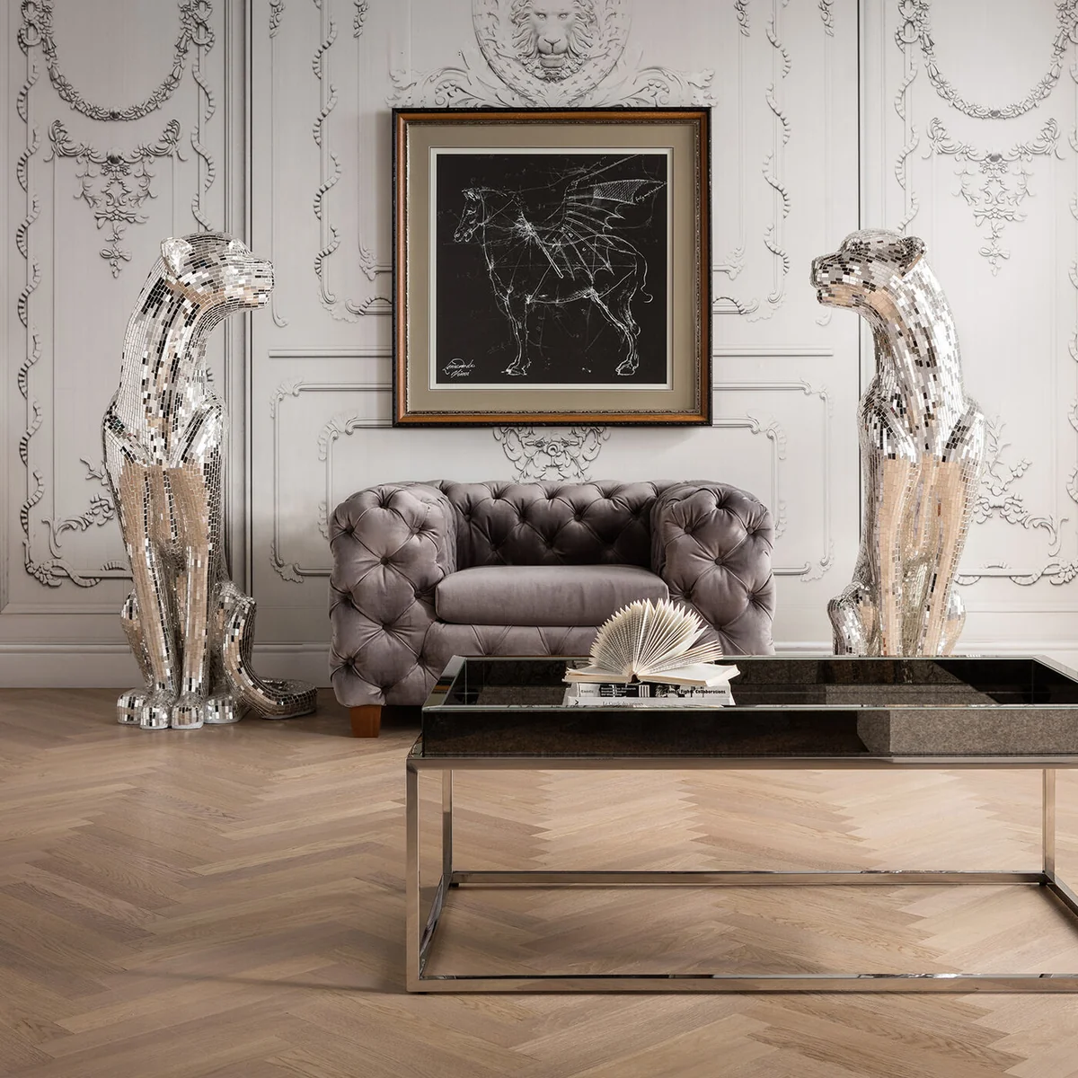 Make a statement with the Silver Glass Laminated Mosaik Welcome Panther Deco Figurine, Left, XL, an exquisite piece of home decor.